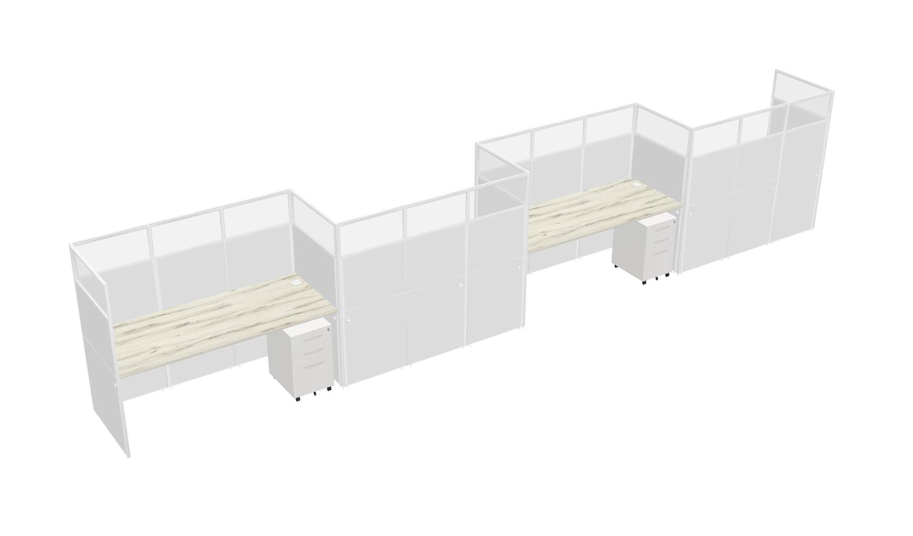 Heinne Holz Rectangular Cubicle Workstations For 4 - Zigzag Formation + White Metal Mobile Drawers
