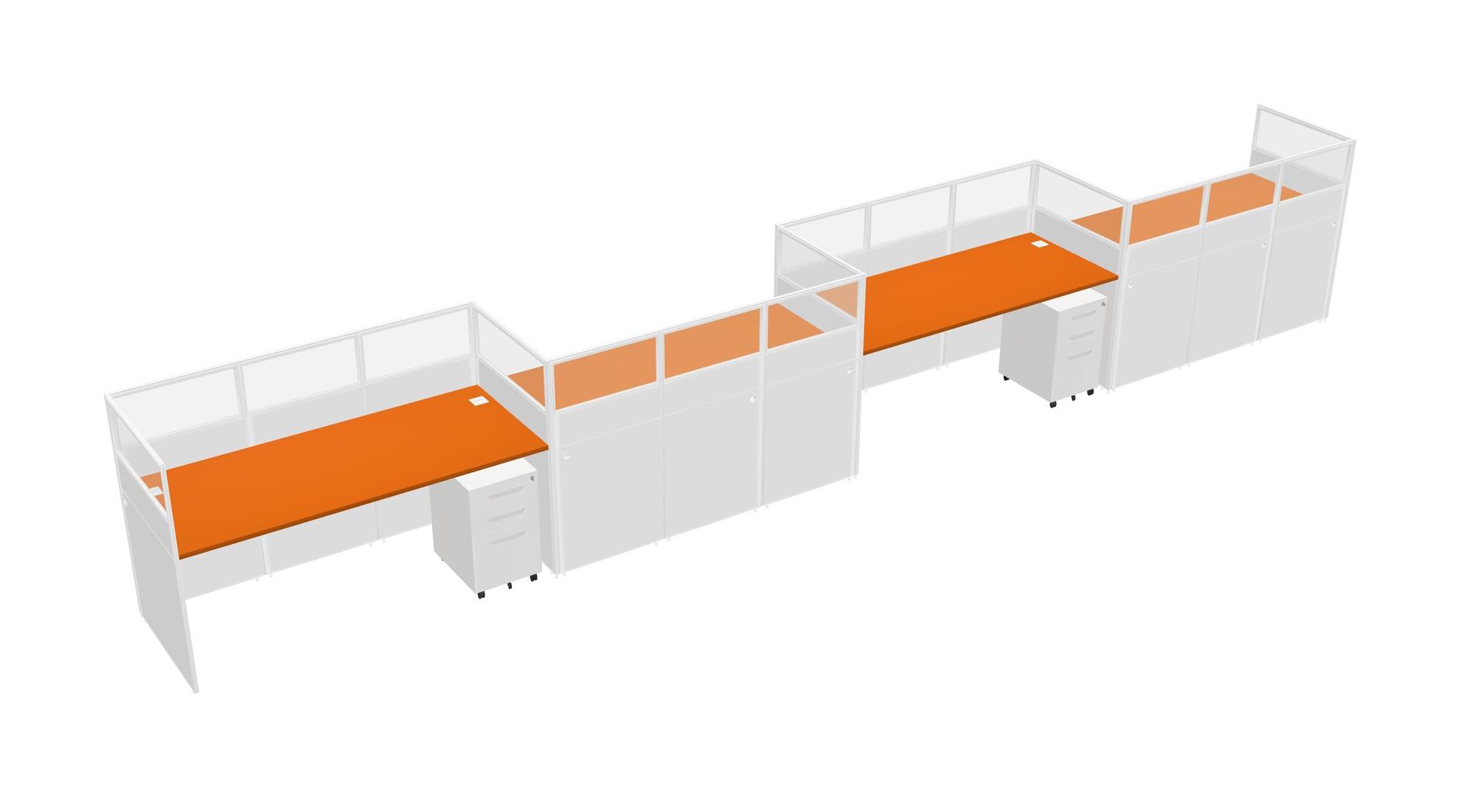 Orange Rectangular Cubicle Workstations For 4 - Zigzag Formation + White Metal Mobile Drawers