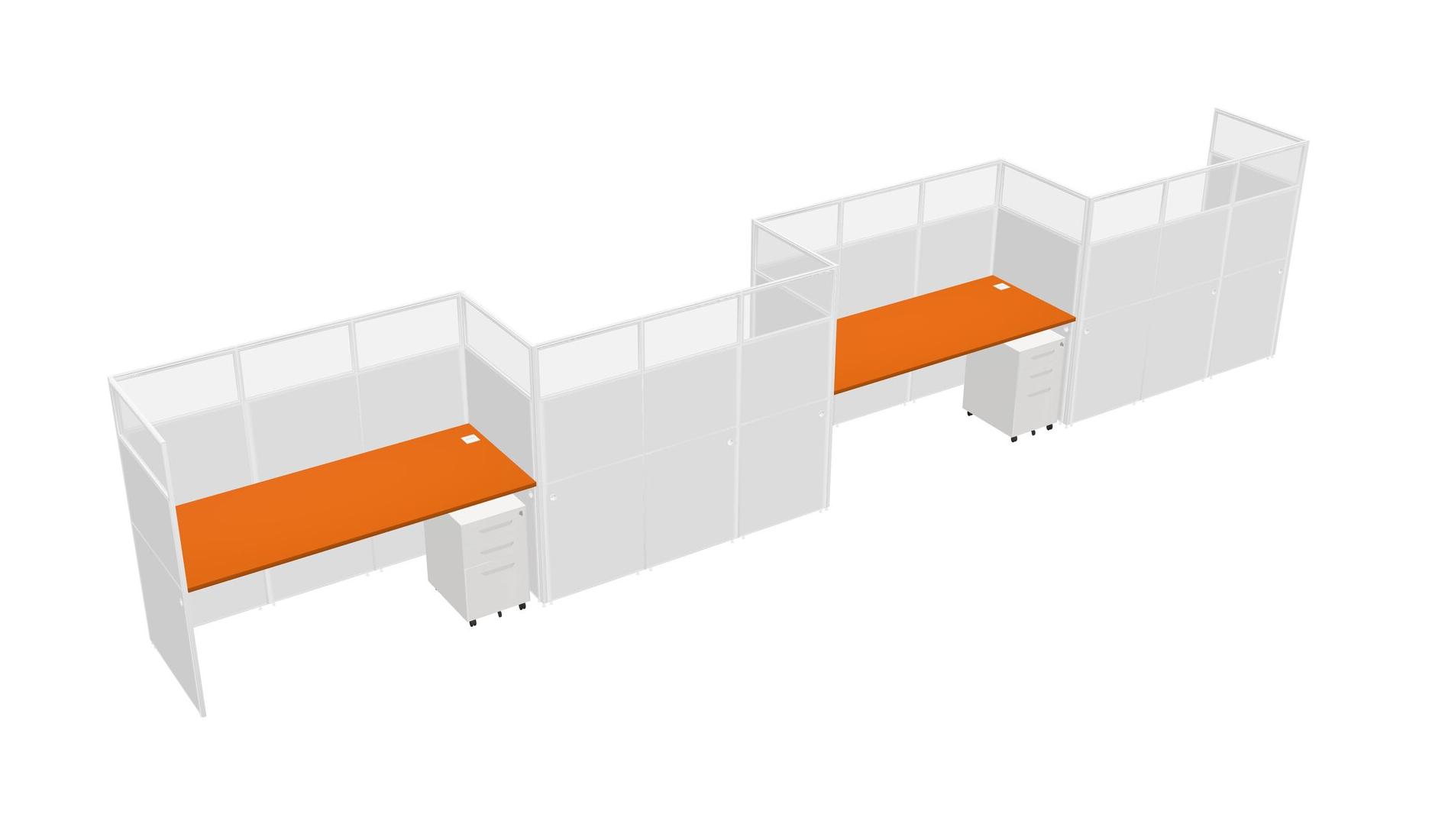 Orange Rectangular Cubicle Workstations For 4 - Zigzag Formation + White Metal Mobile Drawers