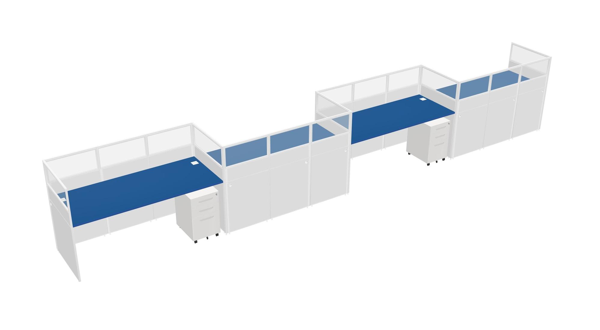 Prism Blue Rectangular Cubicle Workstations For 4 - Zigzag Formation + White Metal Mobile Drawers