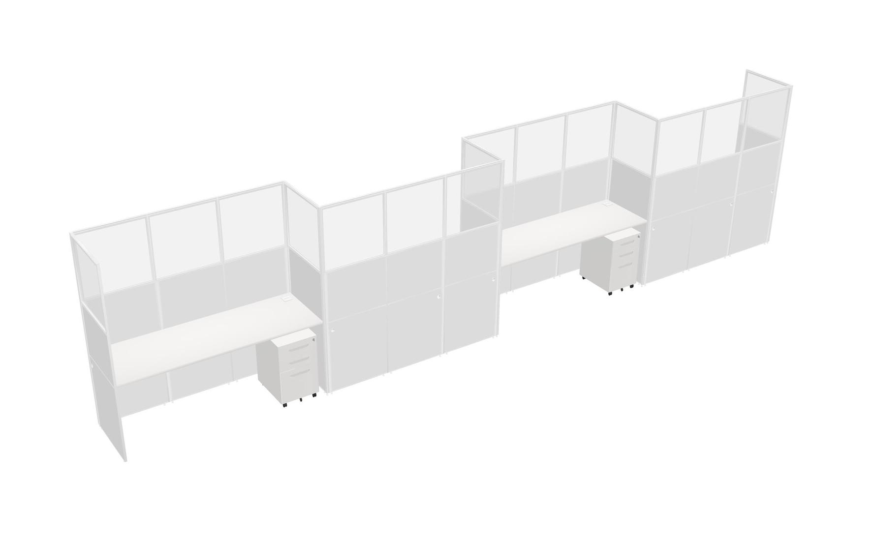 White Rectangular Cubicle Workstations For 4 - Zigzag Formation + White Metal Mobile Drawers