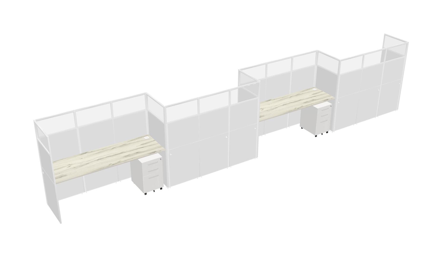 Heinne Holz Rectangular Cubicle Workstations For 4 - Zigzag Formation + White Metal Mobile Drawers