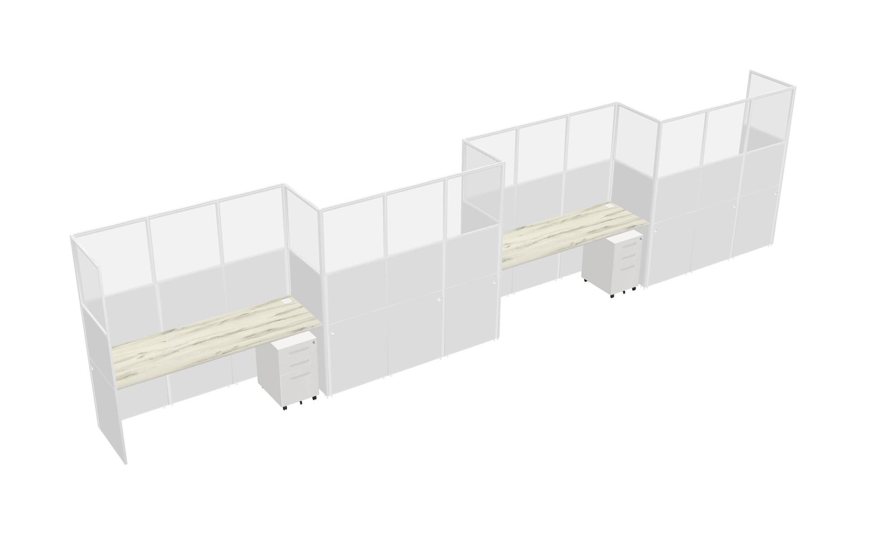 Heinne Holz Rectangular Cubicle Workstations For 4 - Zigzag Formation + White Metal Mobile Drawers