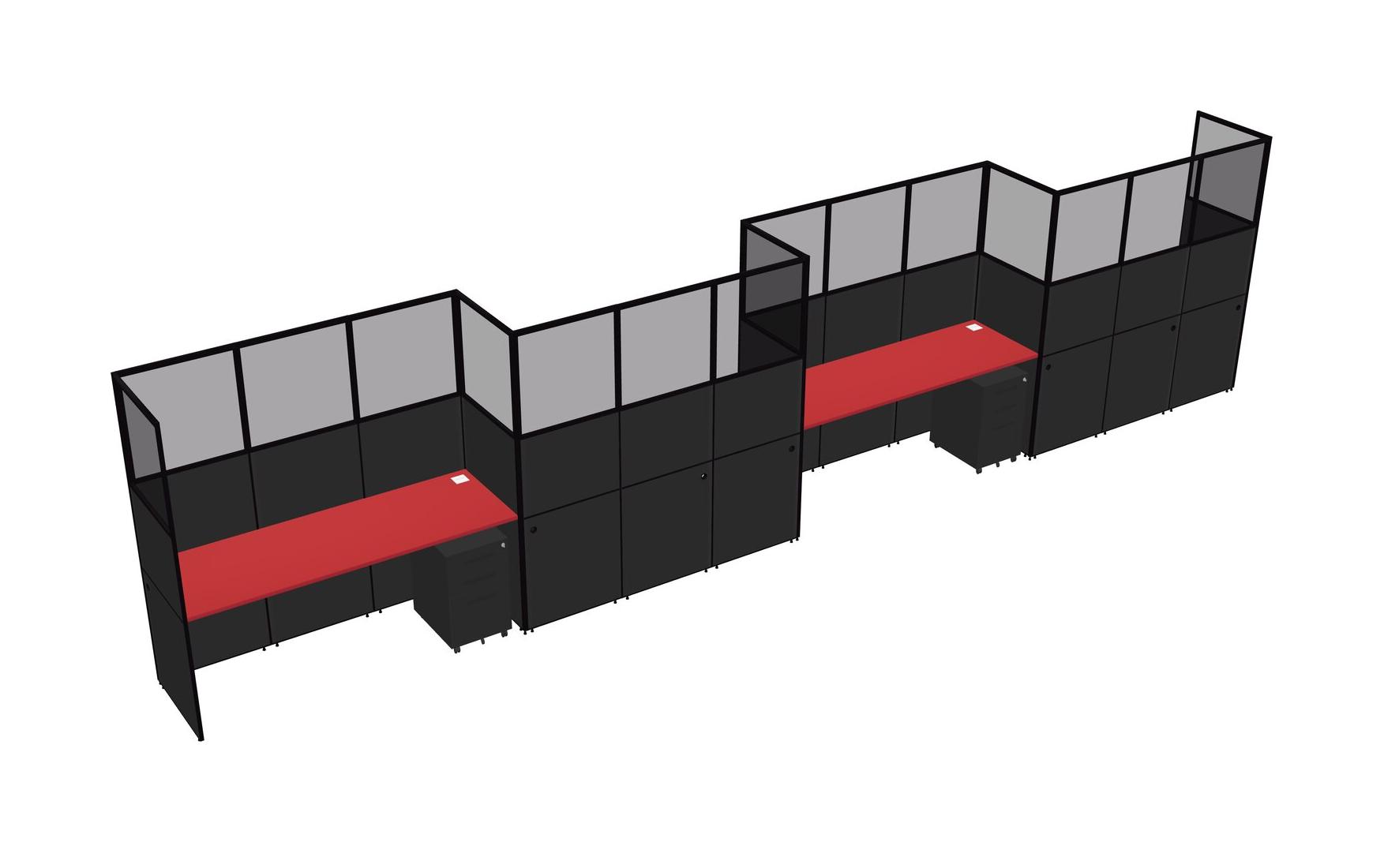 Prism Red Rectangular Cubicle Workstations For 4 - Zigzag Formation + Black Metal Mobile Drawers