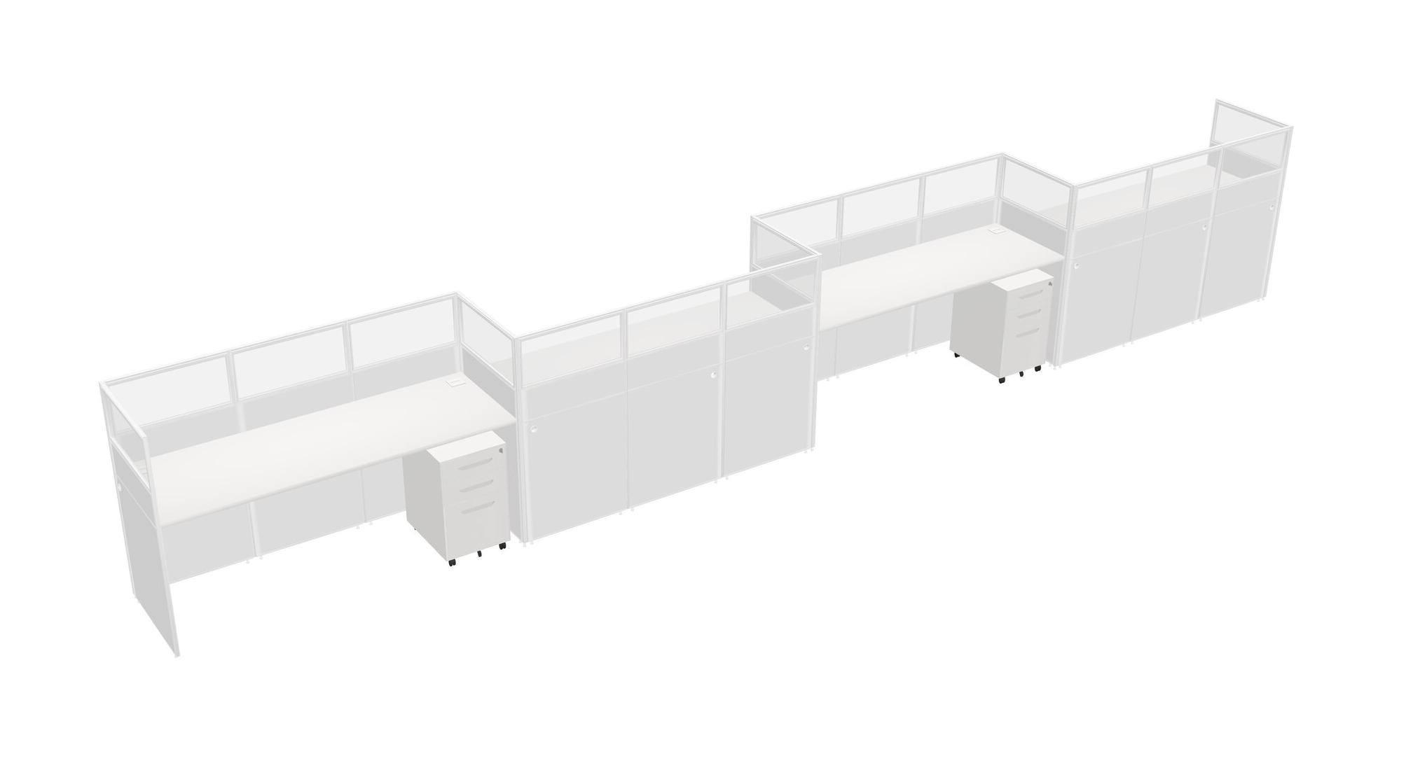 White Rectangular Cubicle Workstations For 4 - Zigzag Formation + White Metal Mobile Drawers