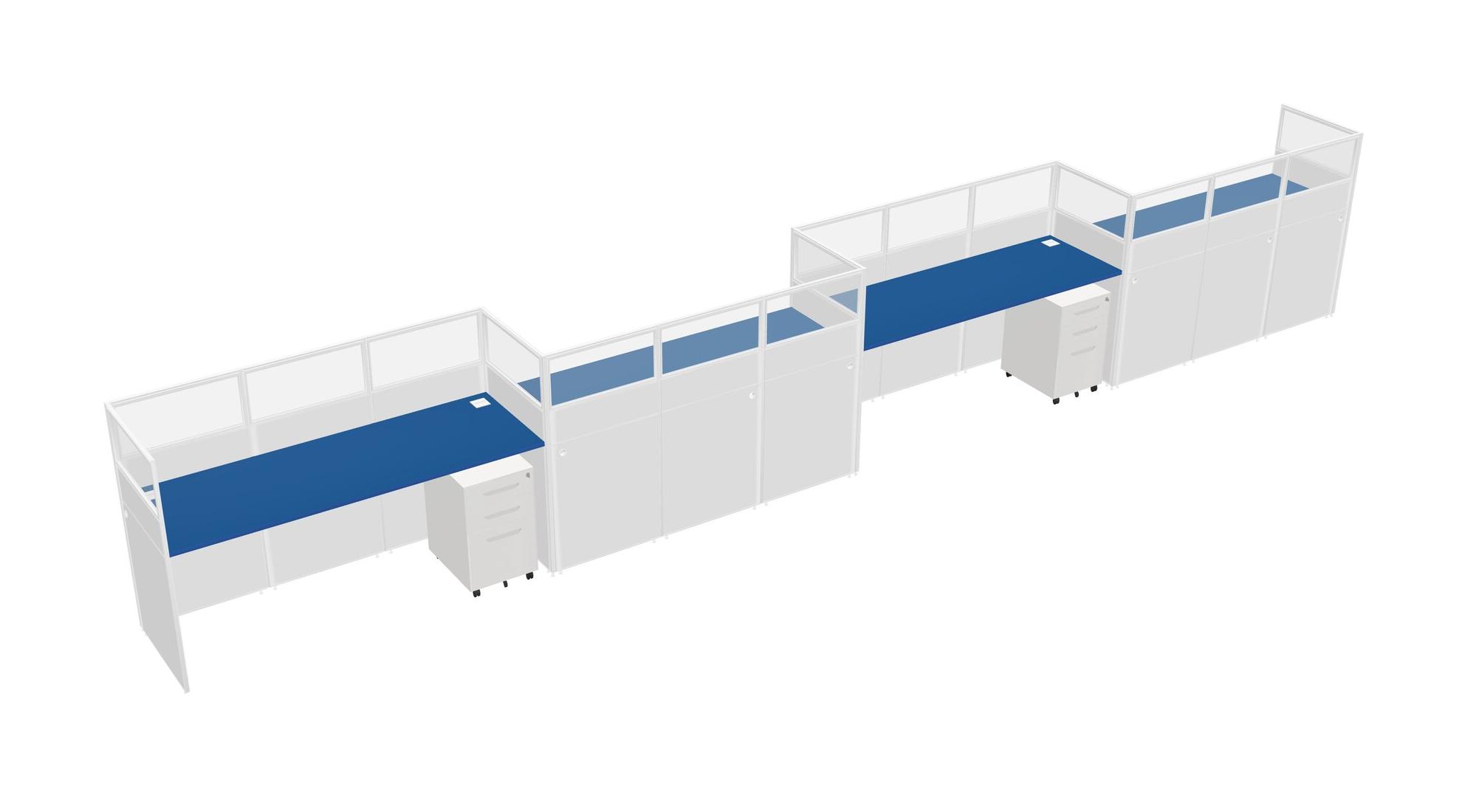 Prism Blue Rectangular Cubicle Workstations For 4 - Zigzag Formation + White Metal Mobile Drawers