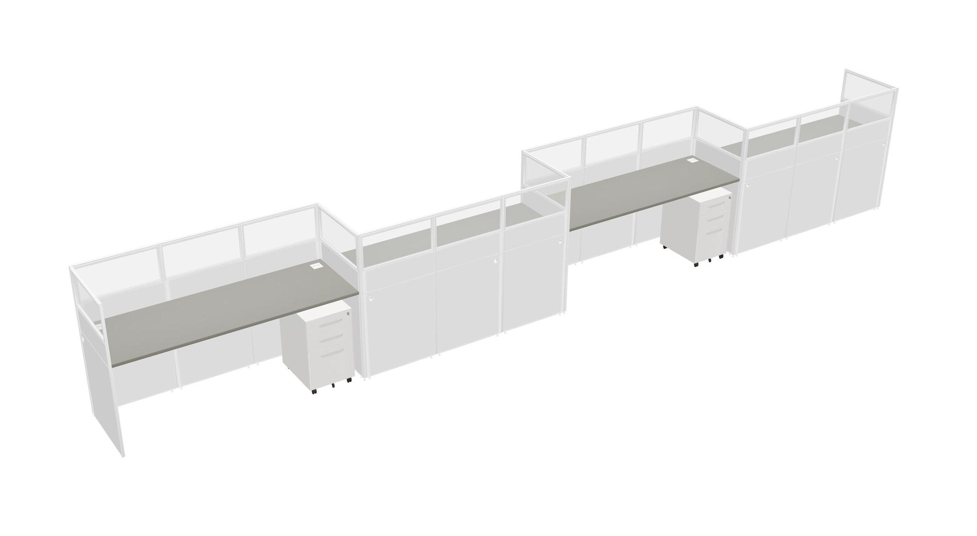 Grey Shadows Rectangular Cubicle Workstations For 4 - Zigzag Formation + White Metal Mobile Drawers