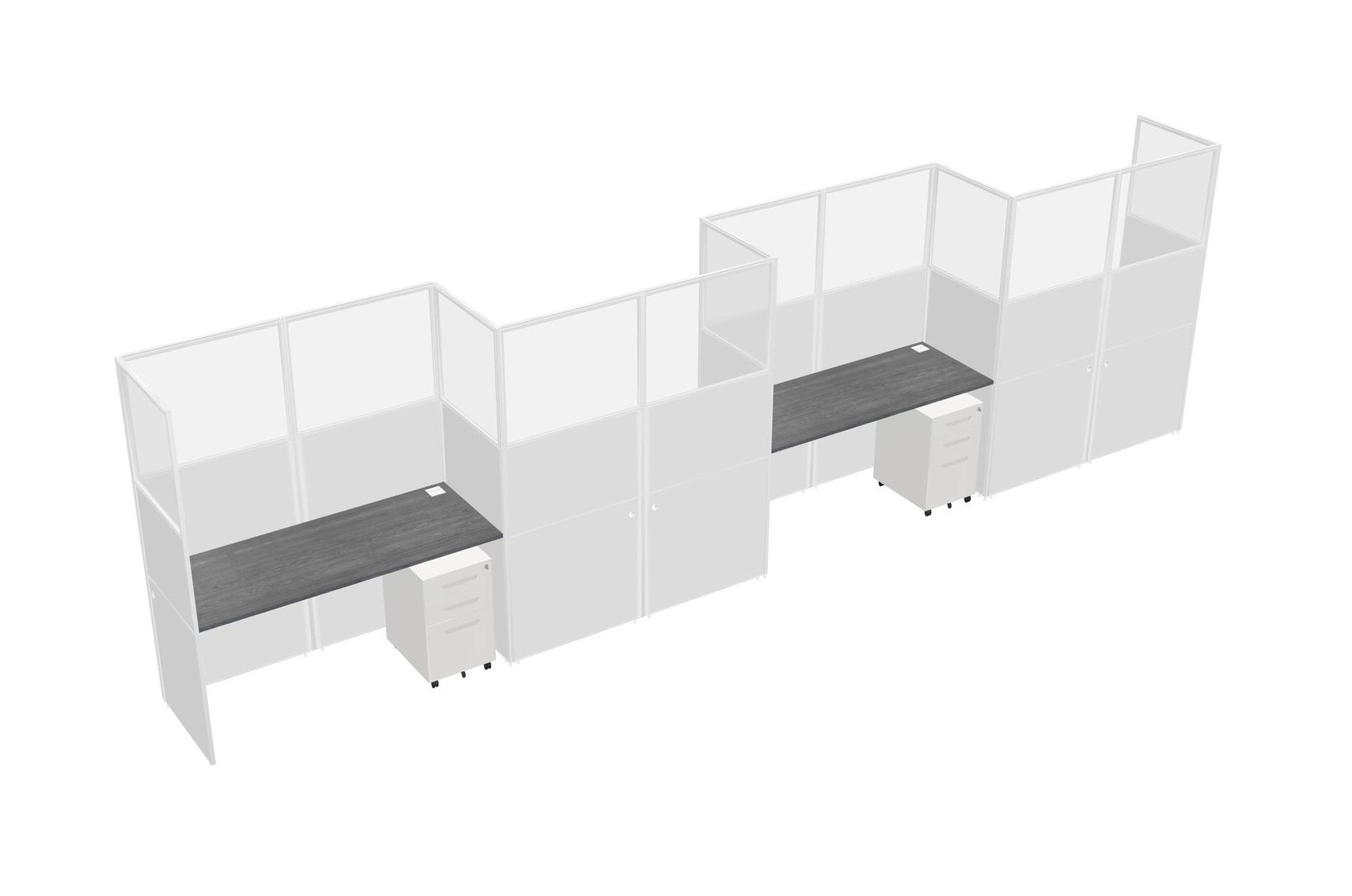 Grey Rectangular Cubicle Workstations For 4 - Zigzag Formation + White Metal Mobile Drawers