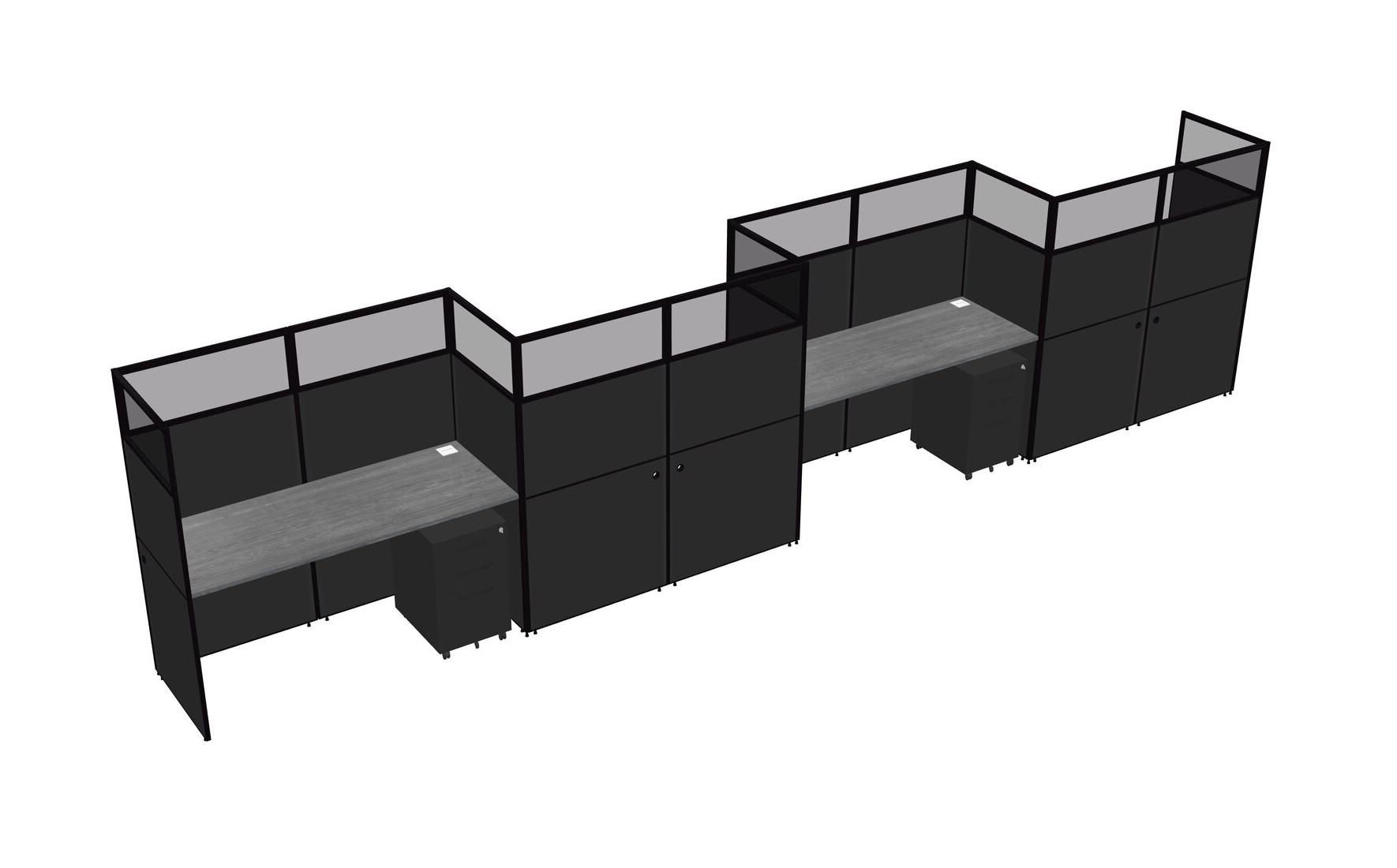 Grey Rectangular Cubicle Workstations For 4 - Zigzag Formation + Black Metal Mobile Drawers