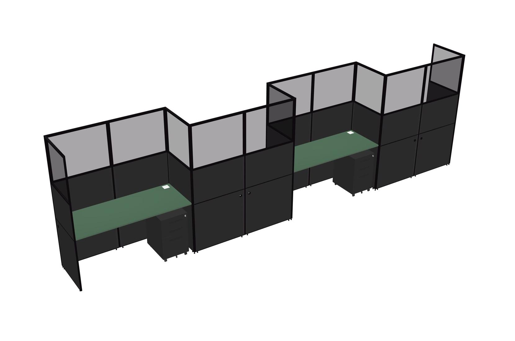 Green Rectangular Cubicle Workstations For 4 - Zigzag Formation + Black Metal Mobile Drawers