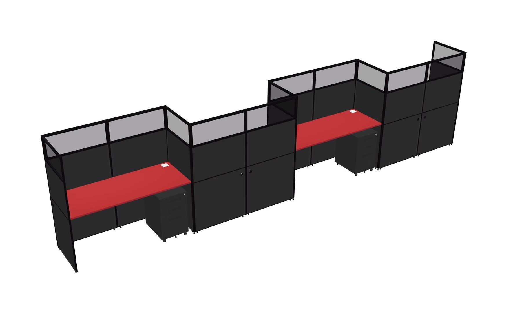 Prism Red Rectangular Cubicle Workstations For 4 - Zigzag Formation + Black Metal Mobile Drawers