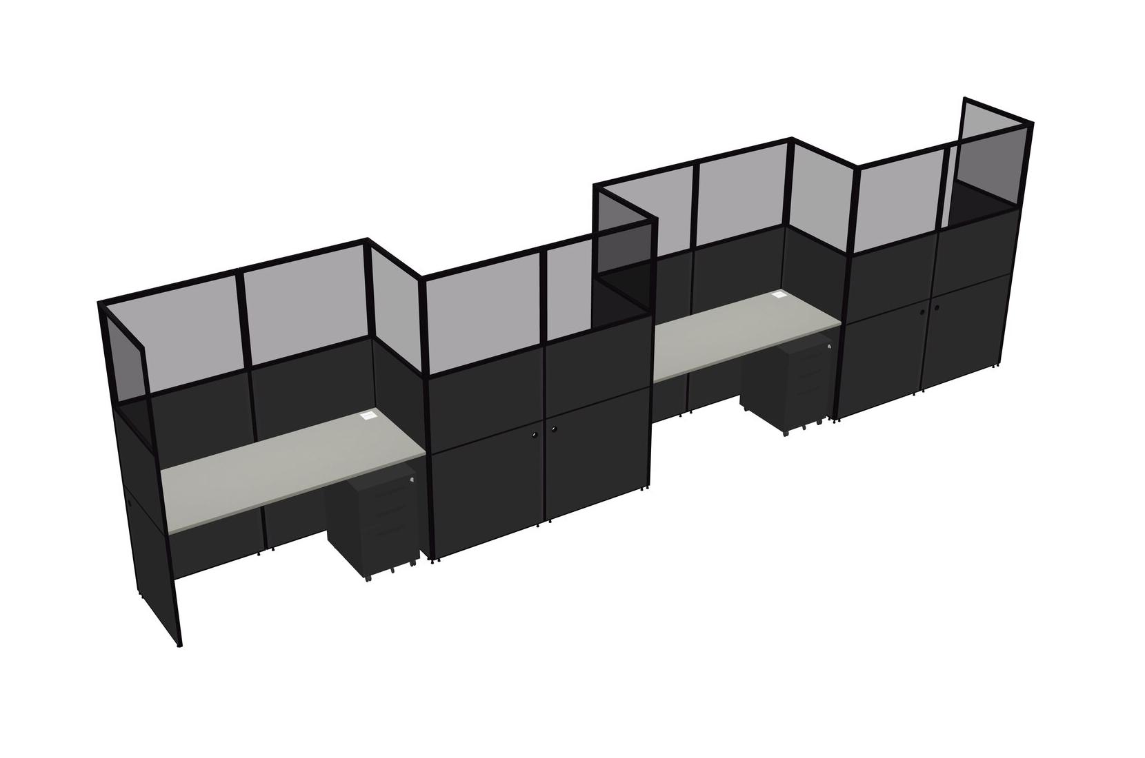 Grey Shadows Rectangular Cubicle Workstations For 4 - Zigzag Formation + Black Metal Mobile Drawers