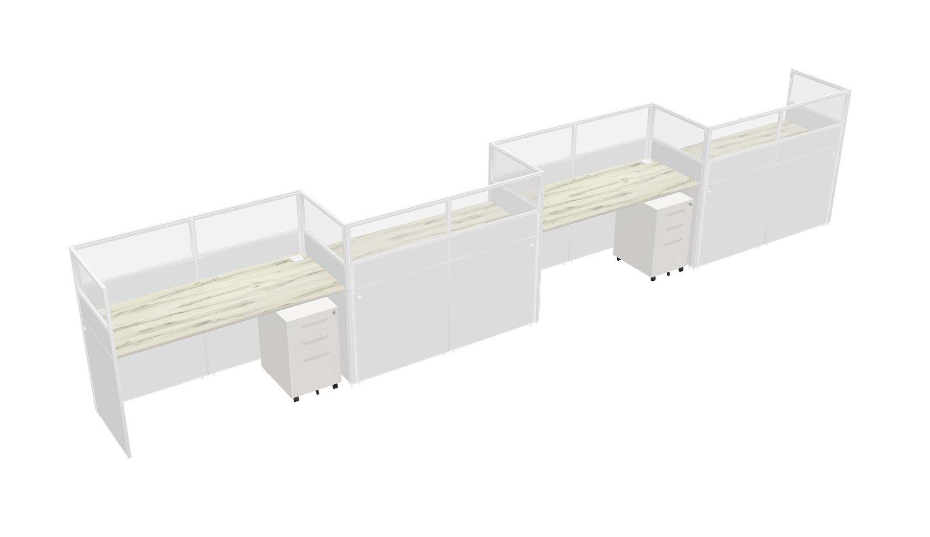 Heinne Holz Rectangular Cubicle Workstations For 4 - Zigzag Formation + White Metal Mobile Drawers
