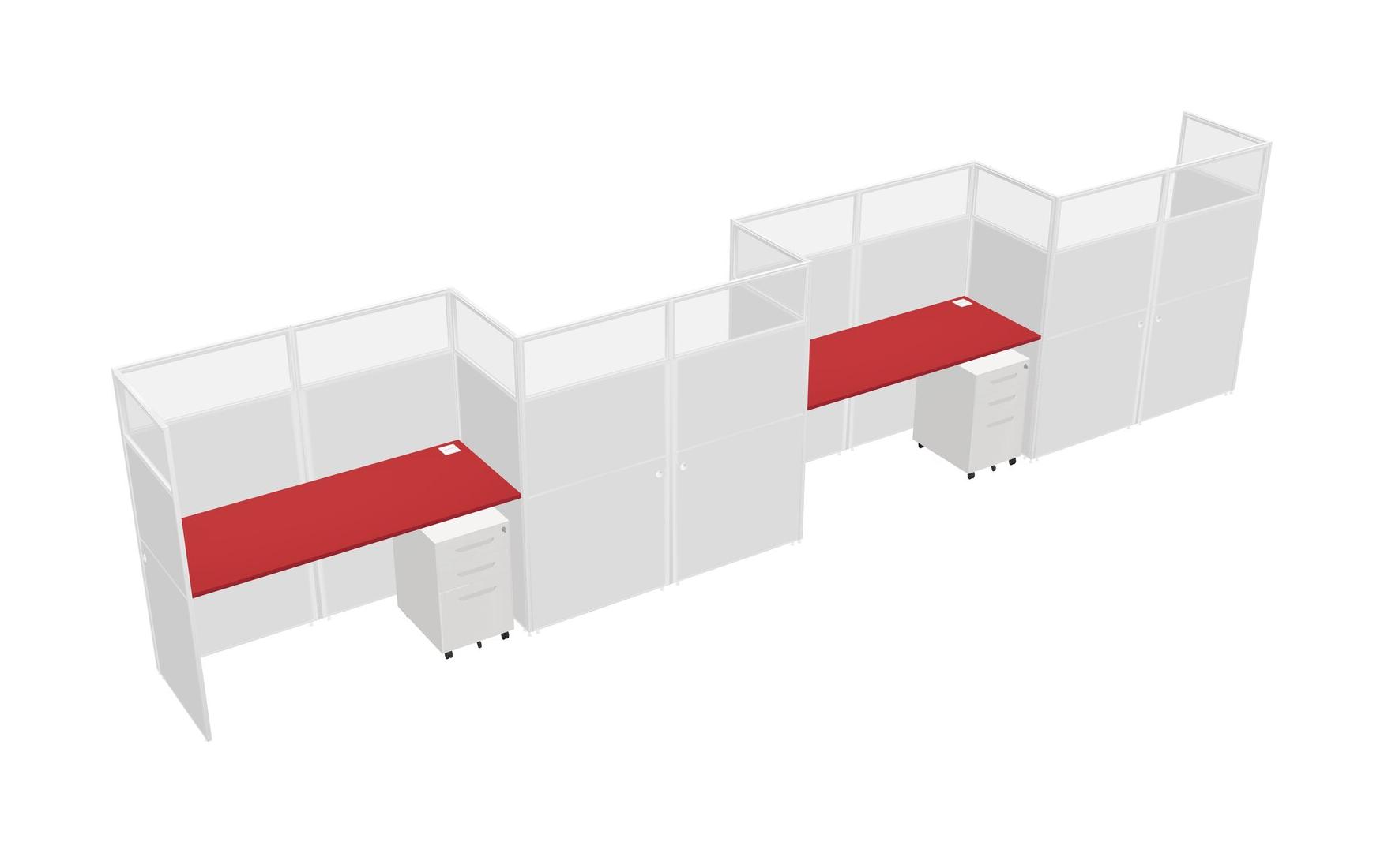 Prism Red Rectangular Cubicle Workstations For 4 - Zigzag Formation + White Metal Mobile Drawers