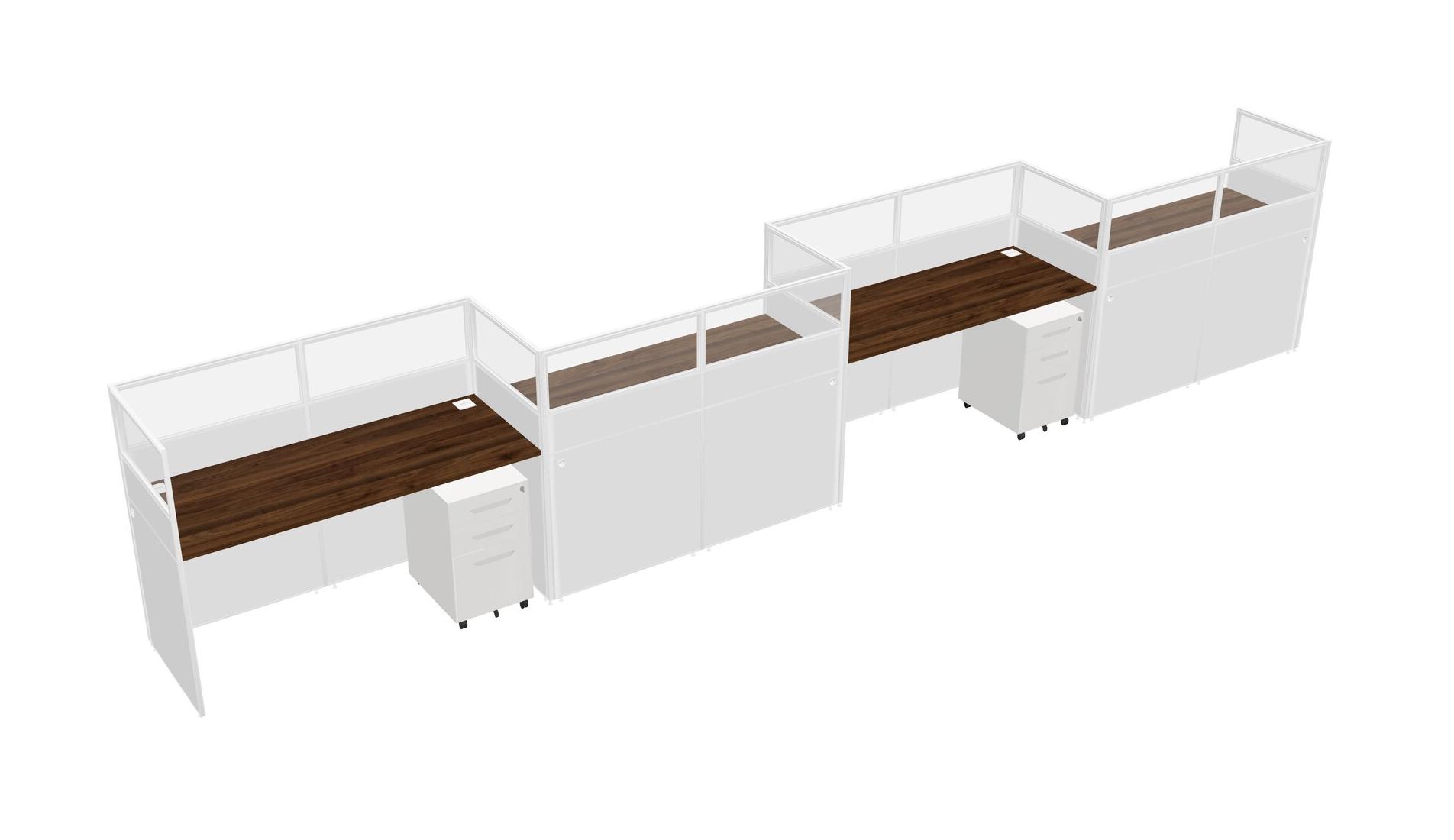 Columbia Walnut Rectangular Cubicle Workstations For 4 - Zigzag Formation + White Metal Mobile Drawers