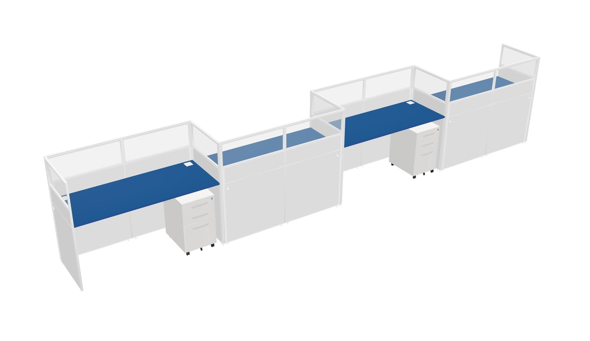 Prism Blue Rectangular Cubicle Workstations For 4 - Zigzag Formation + White Metal Mobile Drawers