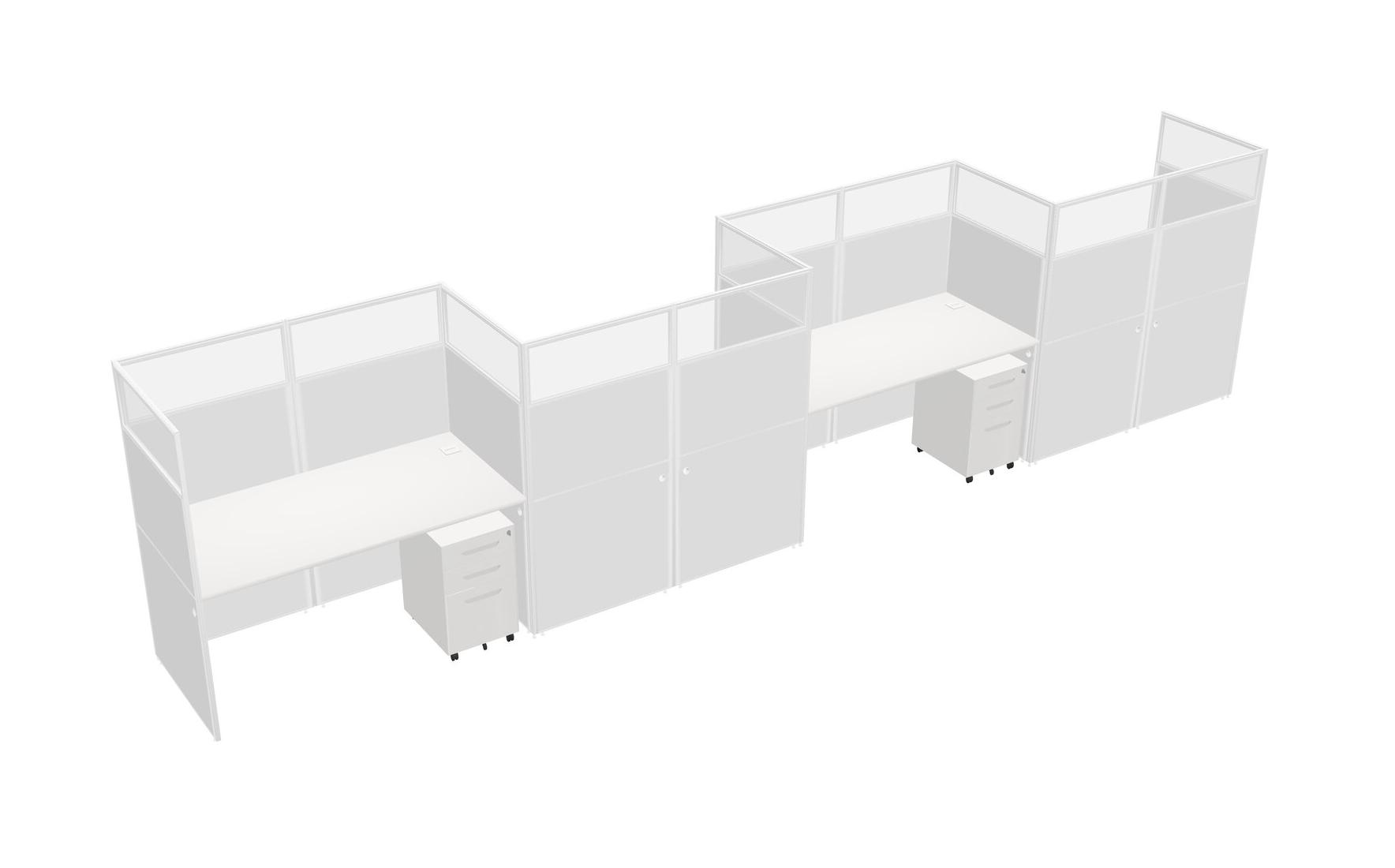 White Rectangular Cubicle Workstations For 4 - Zigzag Formation + White Metal Mobile Drawers