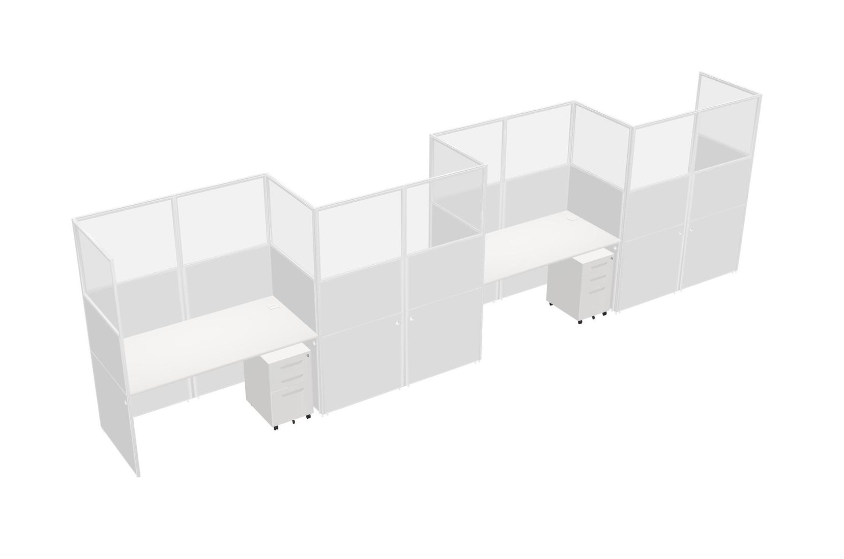 White Rectangular Cubicle Workstations For 4 - Zigzag Formation + White Metal Mobile Drawers