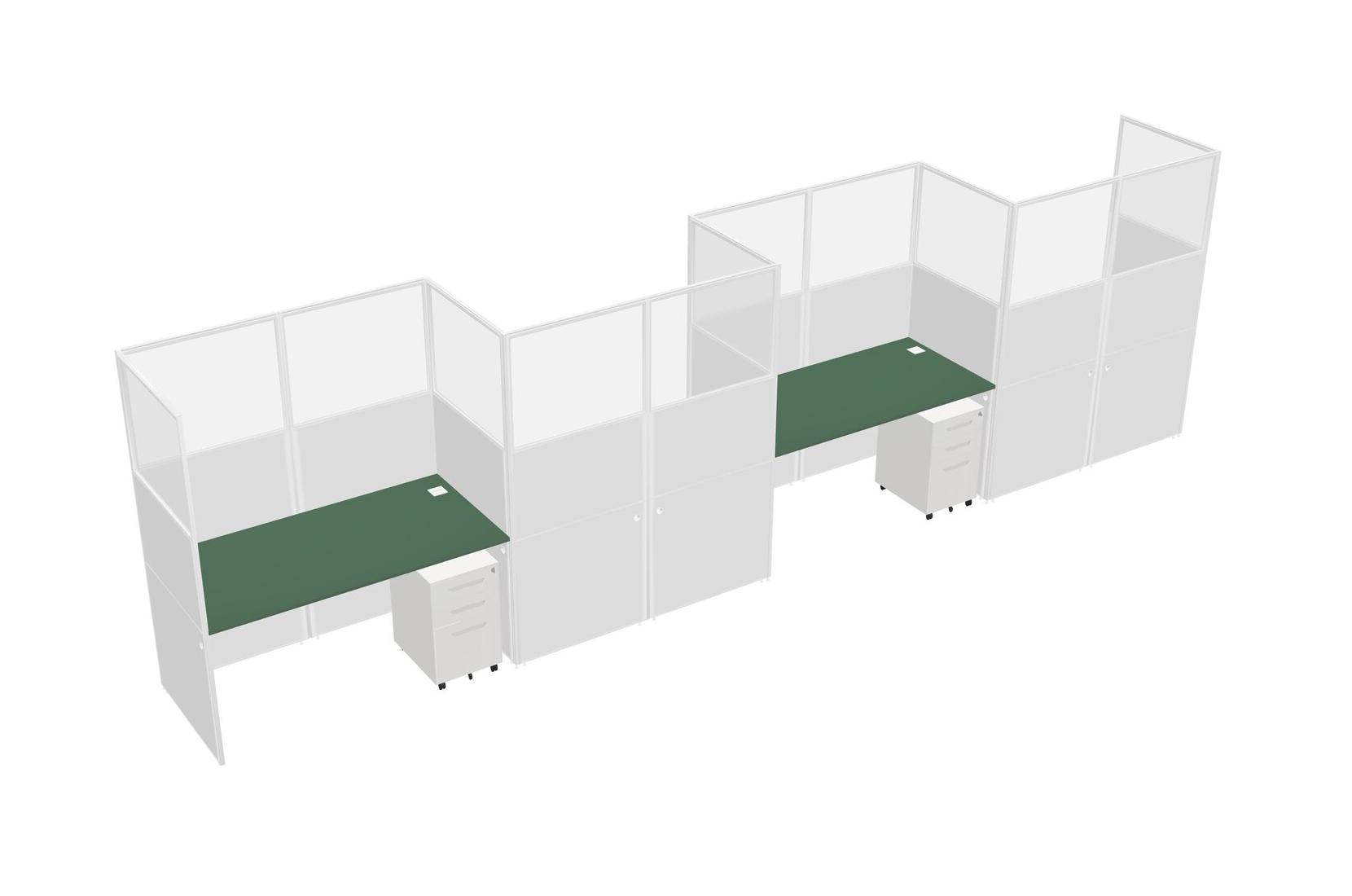 Green Rectangular Cubicle Workstations For 4 - Zigzag Formation + White Metal Mobile Drawers