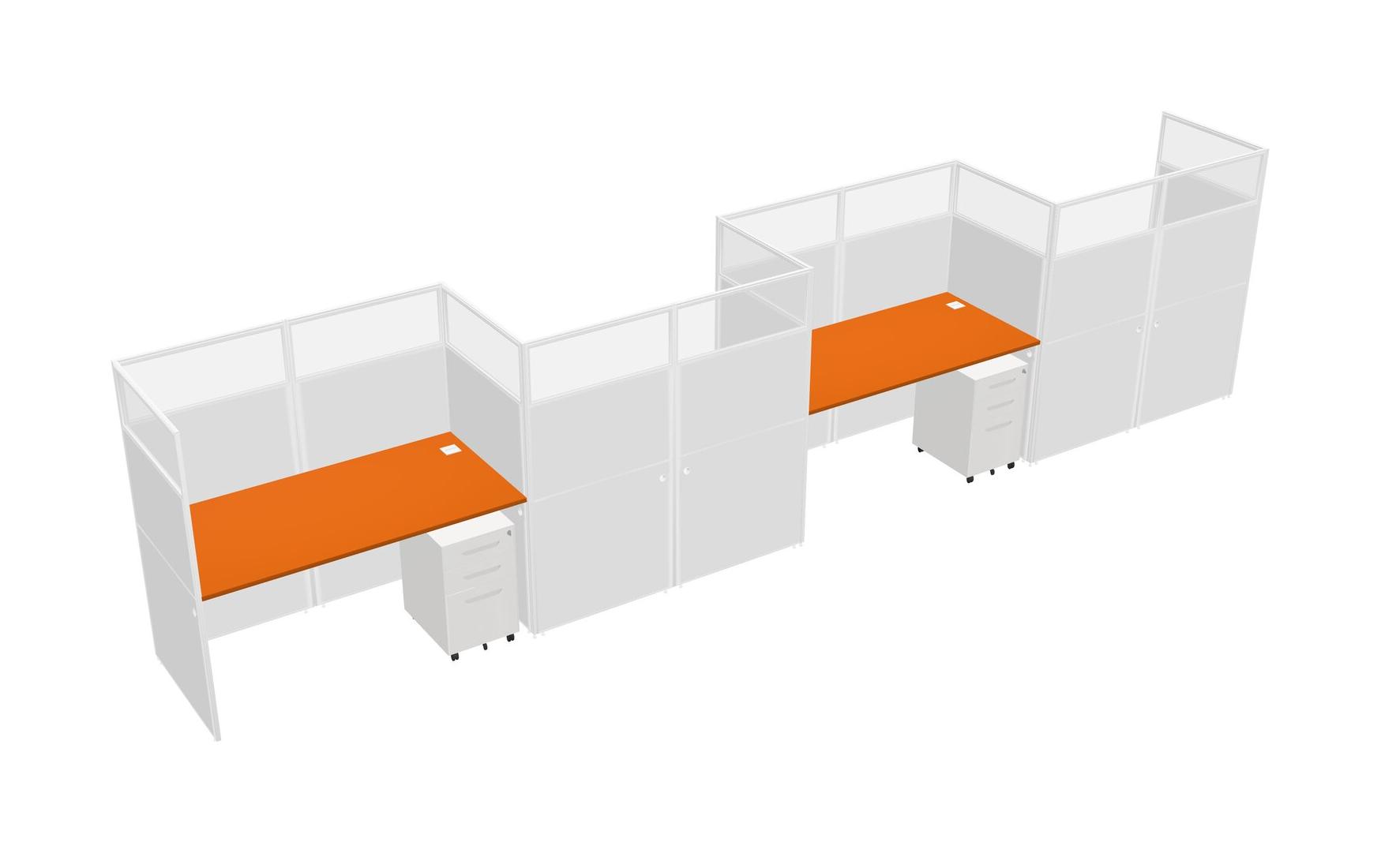 Orange Rectangular Cubicle Workstations For 4 - Zigzag Formation + White Metal Mobile Drawers