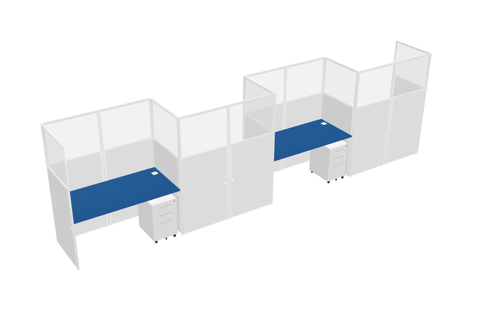 Prism Blue Rectangular Cubicle Workstations For 4 - Zigzag Formation + White Metal Mobile Drawers