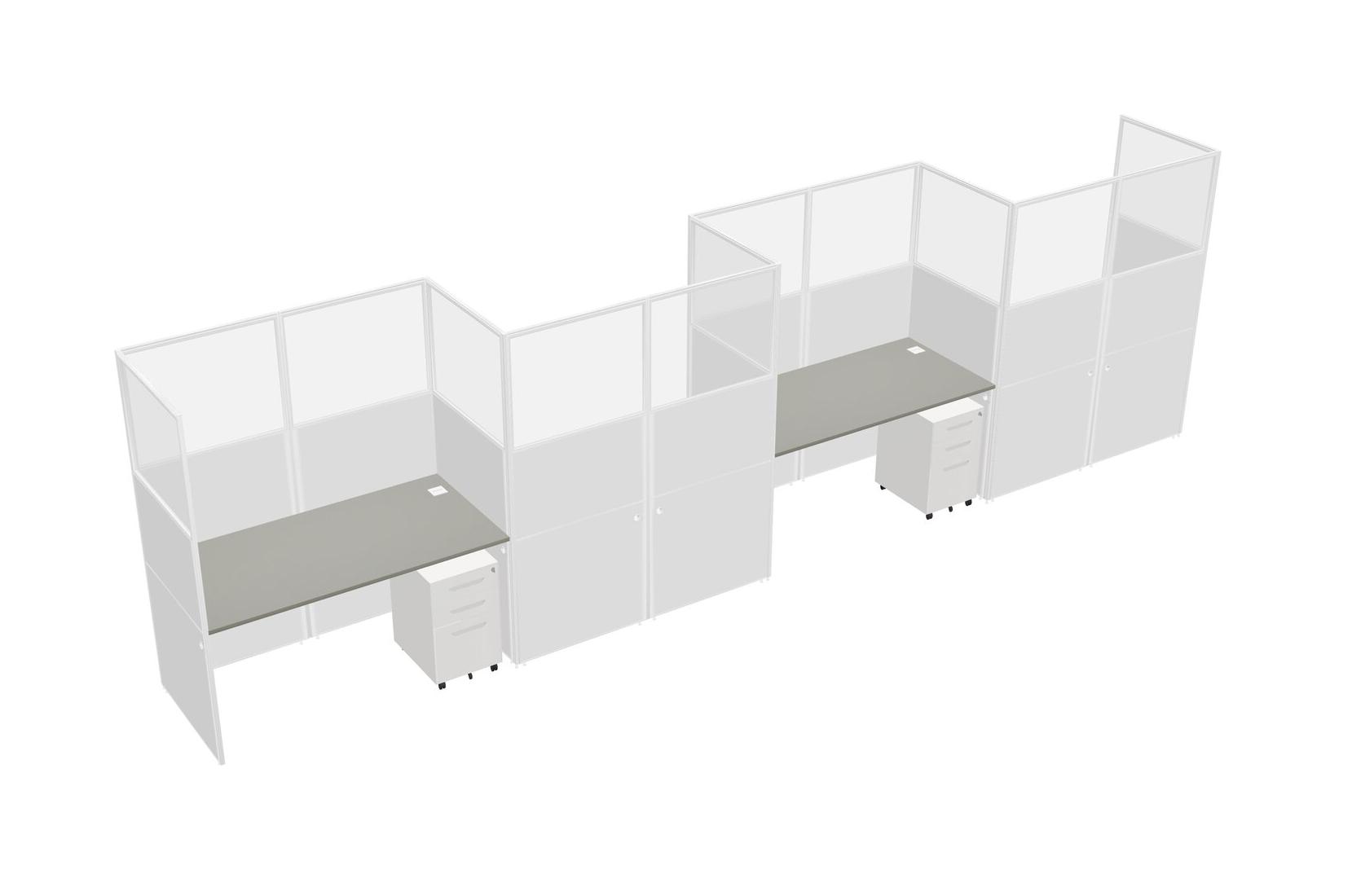 Grey Shadows Rectangular Cubicle Workstations For 4 - Zigzag Formation + White Metal Mobile Drawers