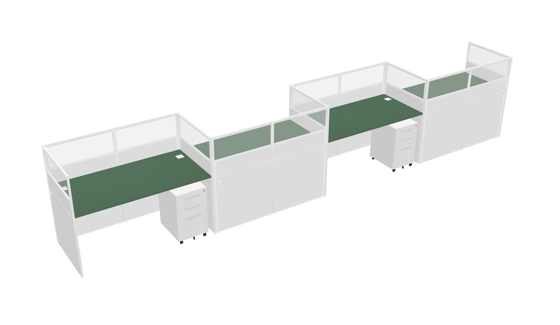 Green Rectangular Cubicle Workstations For 4 - Zigzag Formation + White Metal Mobile Drawers