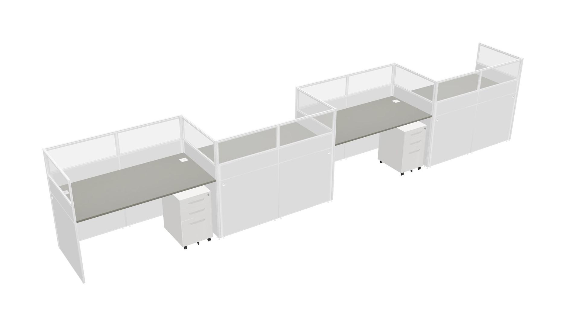 Grey Shadows Rectangular Cubicle Workstations For 4 - Zigzag Formation + White Metal Mobile Drawers