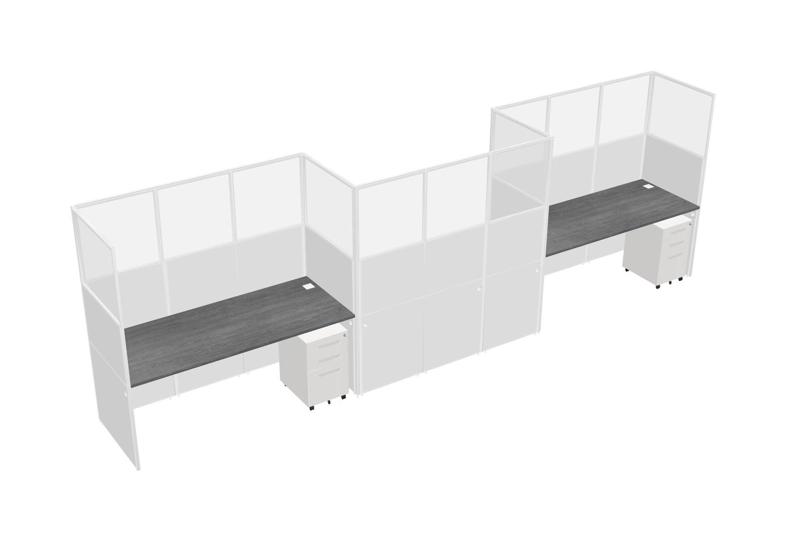 Grey Rectangular Cubicle Workstations For 3 - Zigzag Formation + White Metal Mobile Drawers