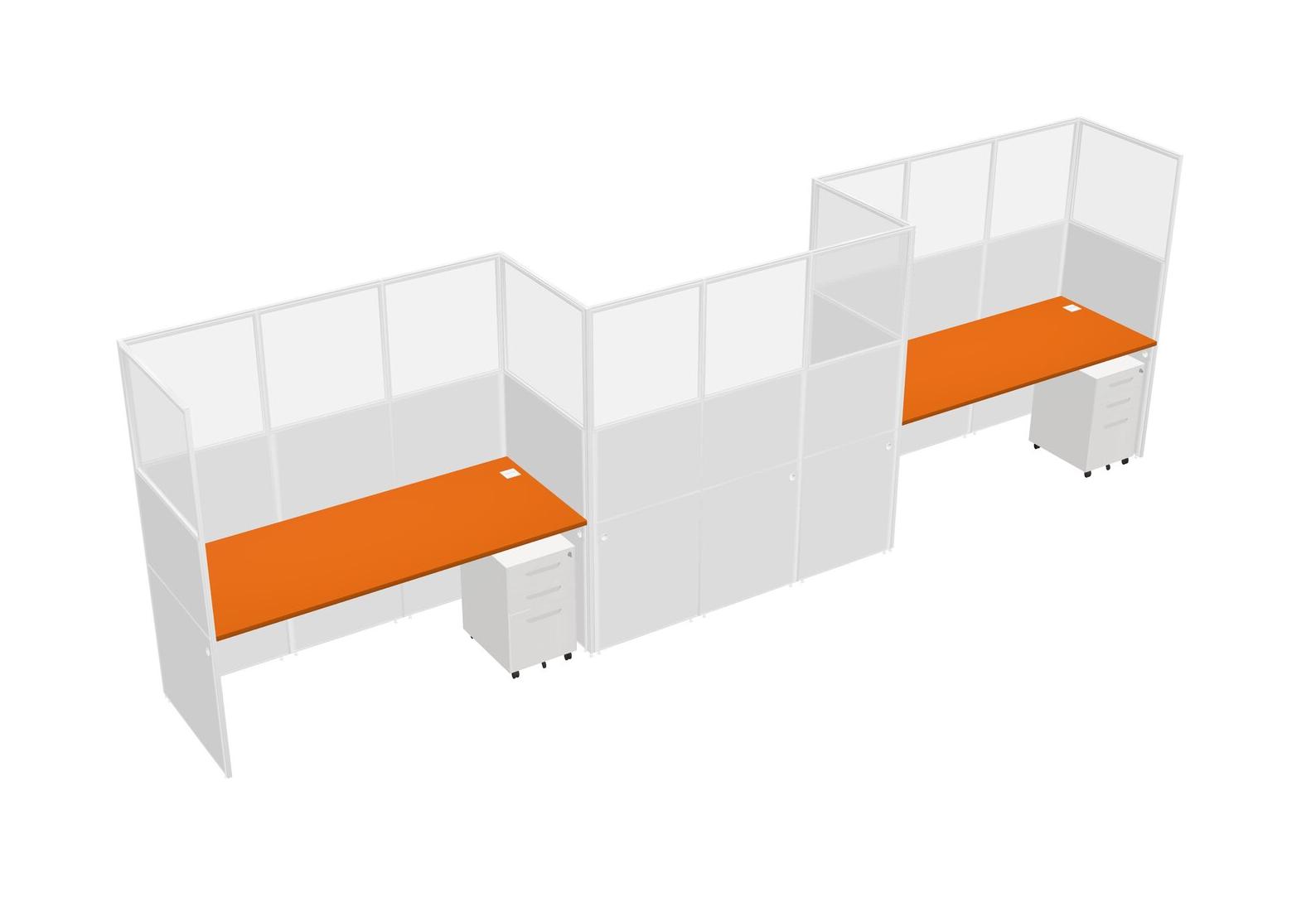 Orange Rectangular Cubicle Workstations For 3 - Zigzag Formation + White Metal Mobile Drawers