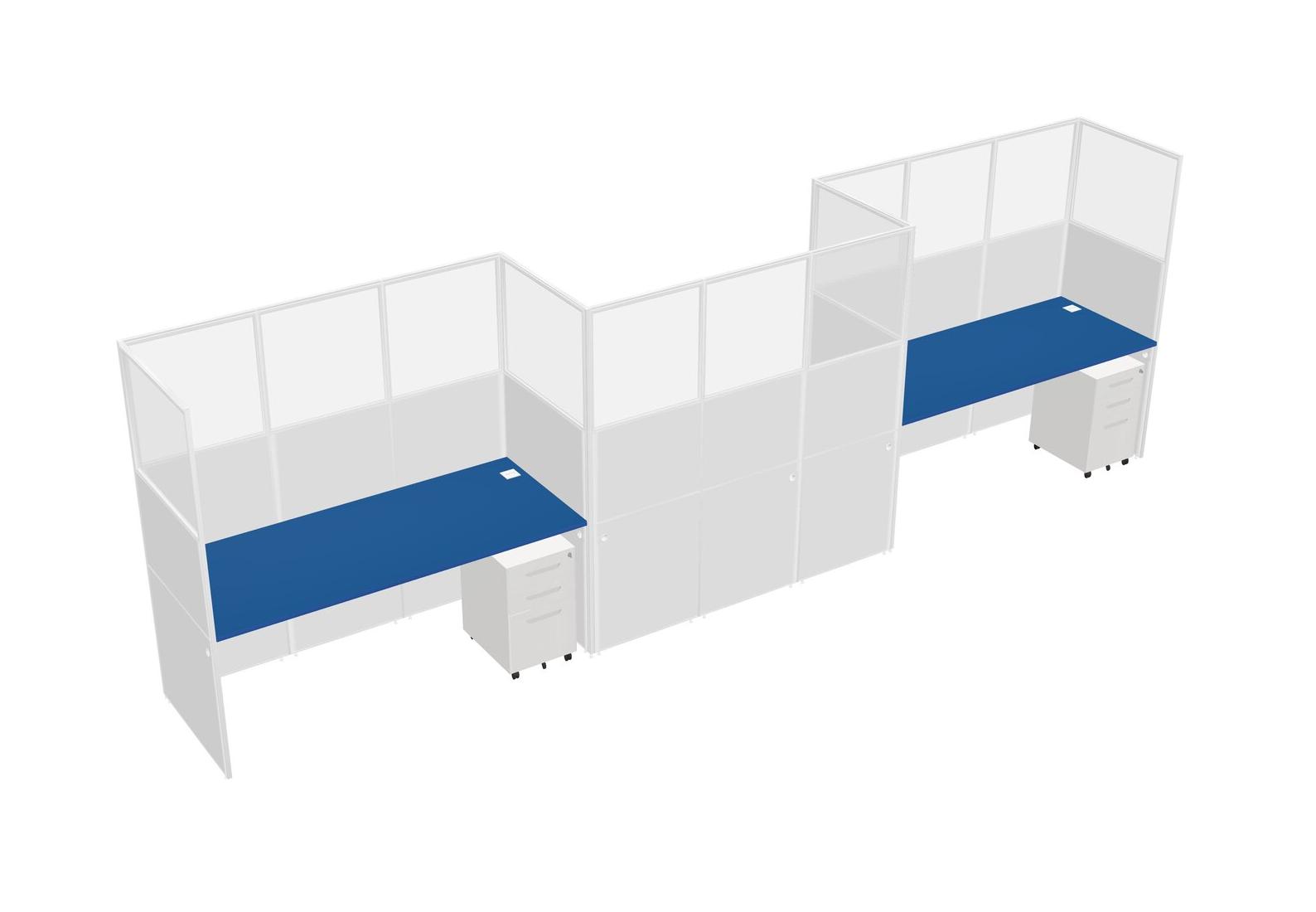 Prism Blue Rectangular Cubicle Workstations For 3 - Zigzag Formation + White Metal Mobile Drawers