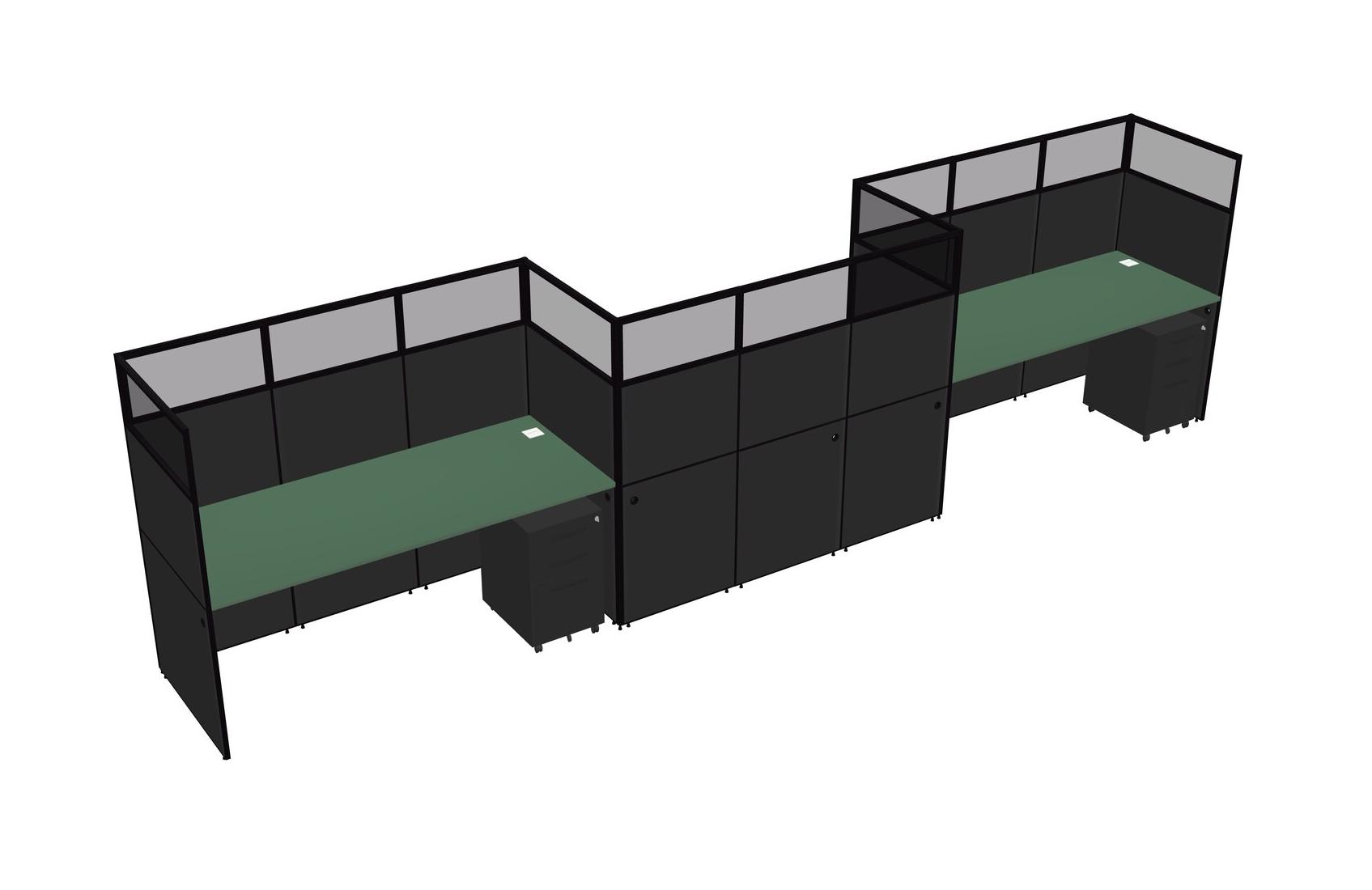 Green Rectangular Cubicle Workstations For 3 - Zigzag Formation + Black Metal Mobile Drawers