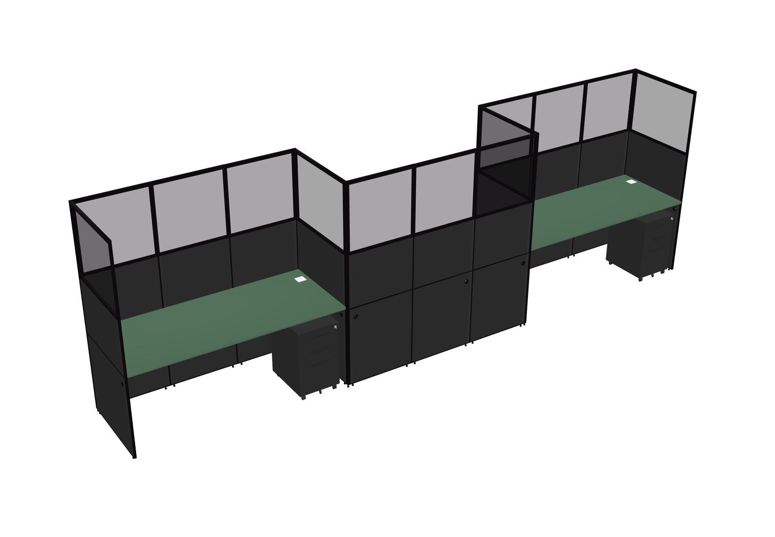 Green Rectangular Cubicle Workstations For 3 - Zigzag Formation + Black Metal Mobile Drawers