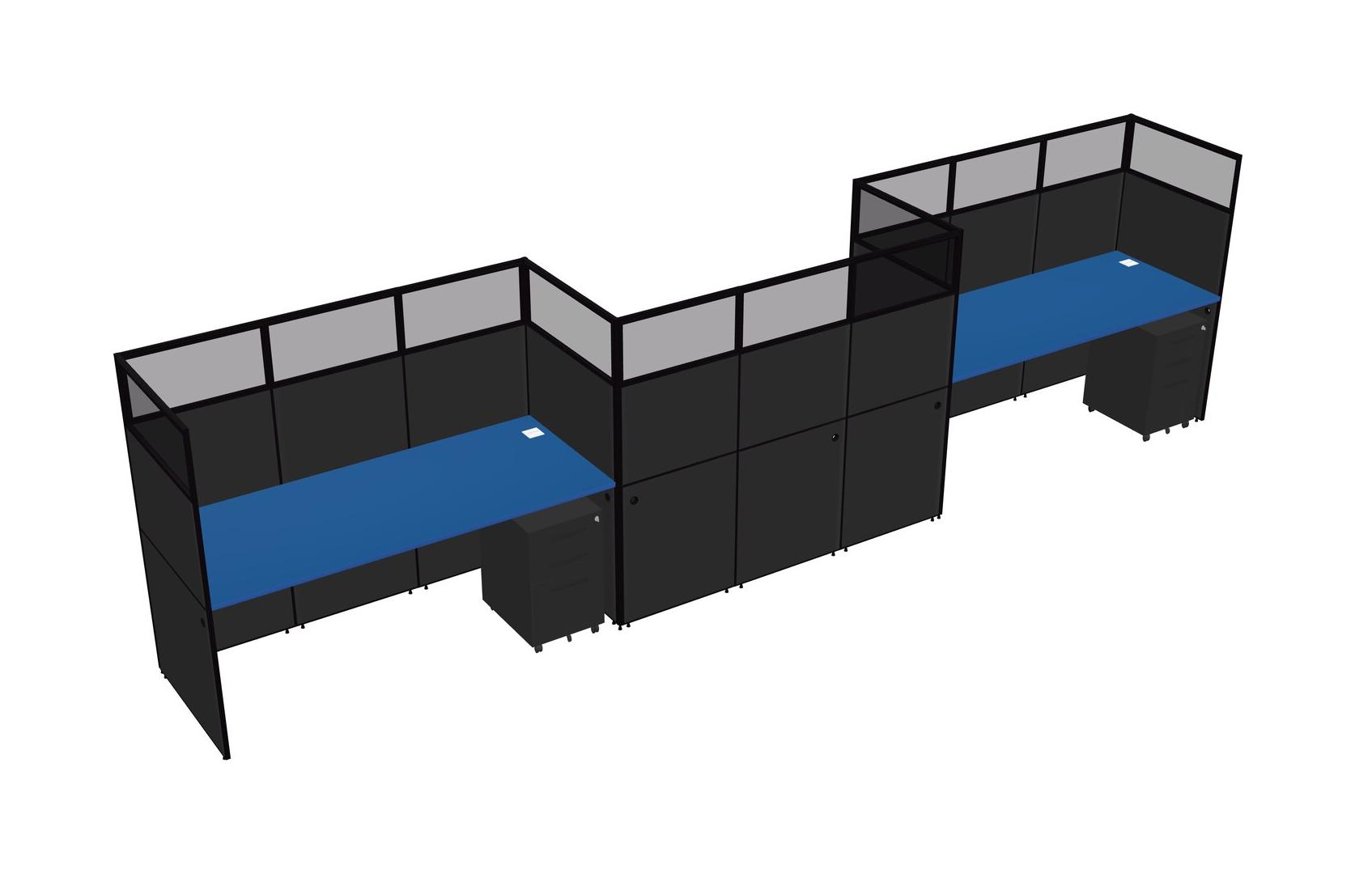 Prism Blue Rectangular Cubicle Workstations For 3 - Zigzag Formation + Black Metal Mobile Drawers
