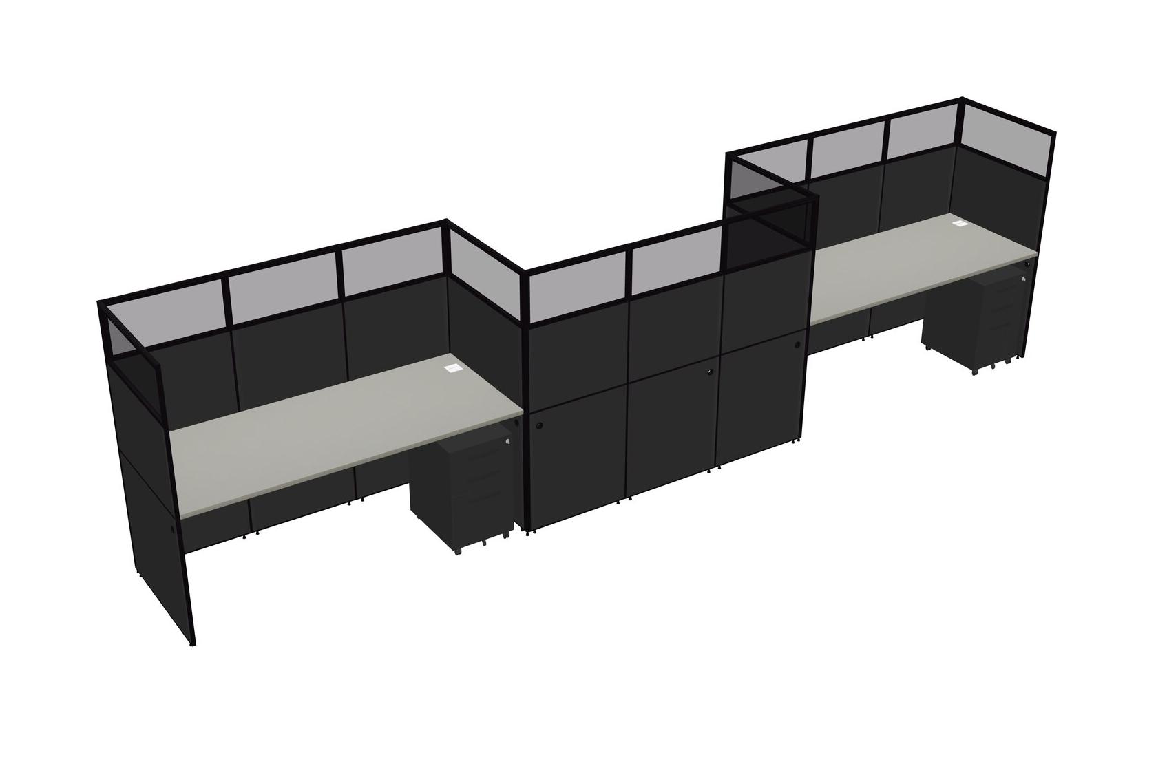 Grey Shadows Rectangular Cubicle Workstations For 3 - Zigzag Formation + Black Metal Mobile Drawers