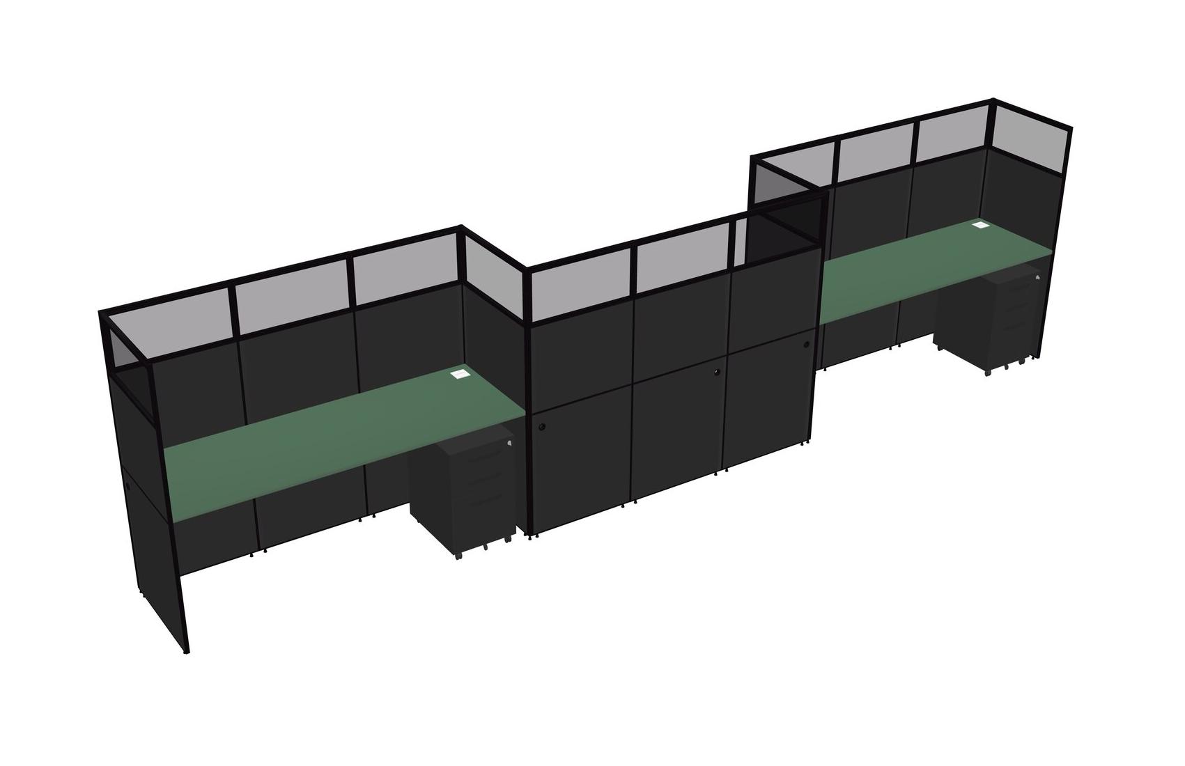 Green Rectangular Cubicle Workstations For 3 - Zigzag Formation + Black Metal Mobile Drawers