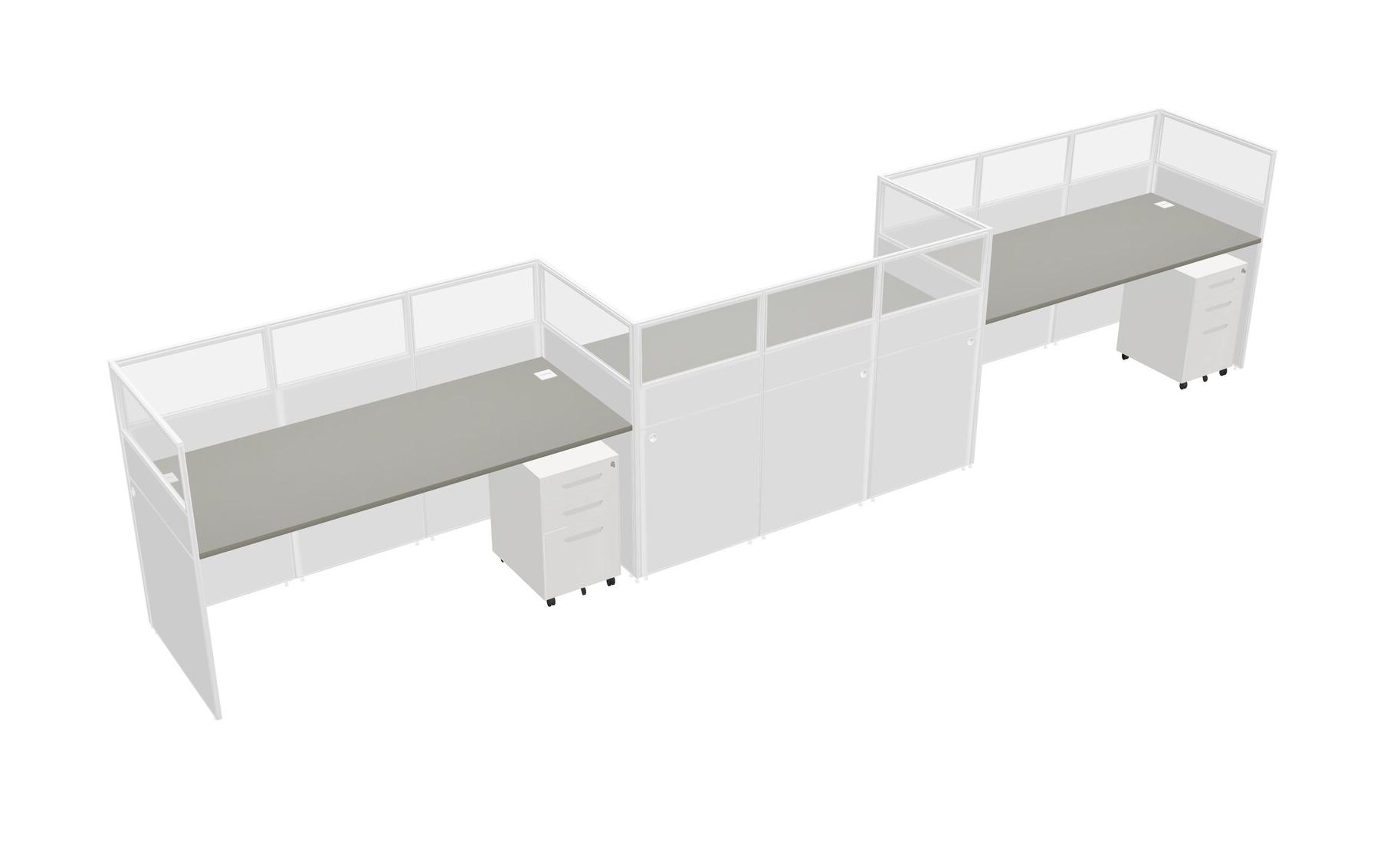 Grey Shadows Rectangular Cubicle Workstations For 3 - Zigzag Formation + White Metal Mobile Drawers