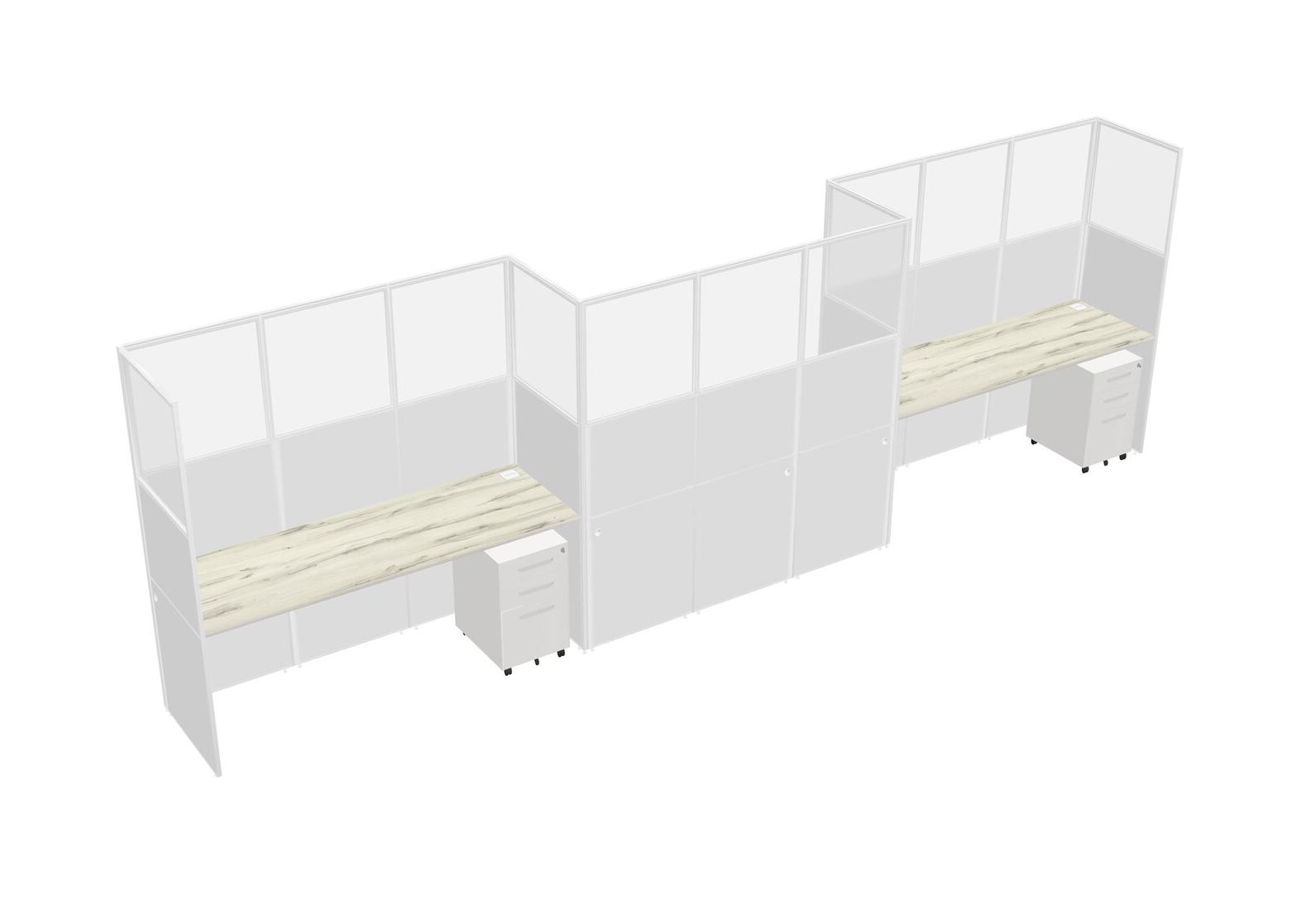 Heinne Holz Rectangular Cubicle Workstations For 3 - Zigzag Formation + White Metal Mobile Drawers