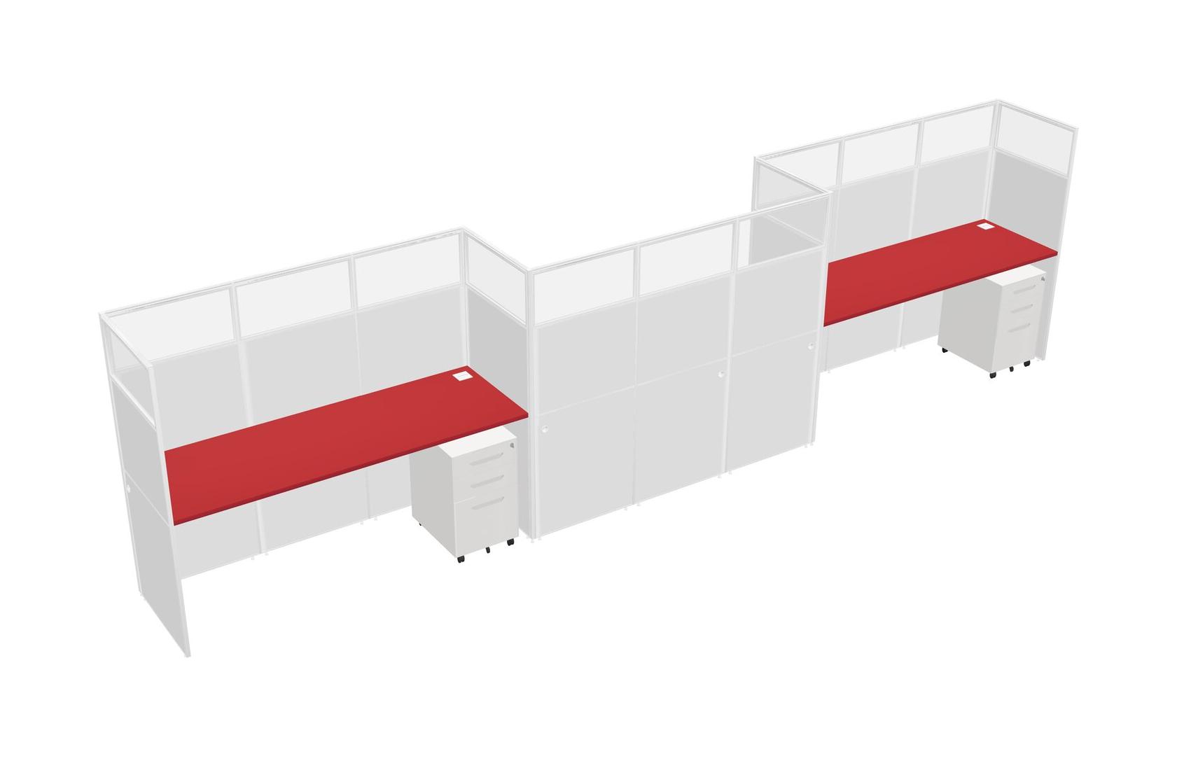 Prism Red Rectangular Cubicle Workstations For 3 - Zigzag Formation + White Metal Mobile Drawers
