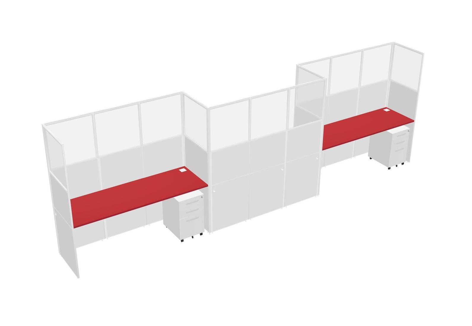 Prism Red Rectangular Cubicle Workstations For 3 - Zigzag Formation + White Metal Mobile Drawers
