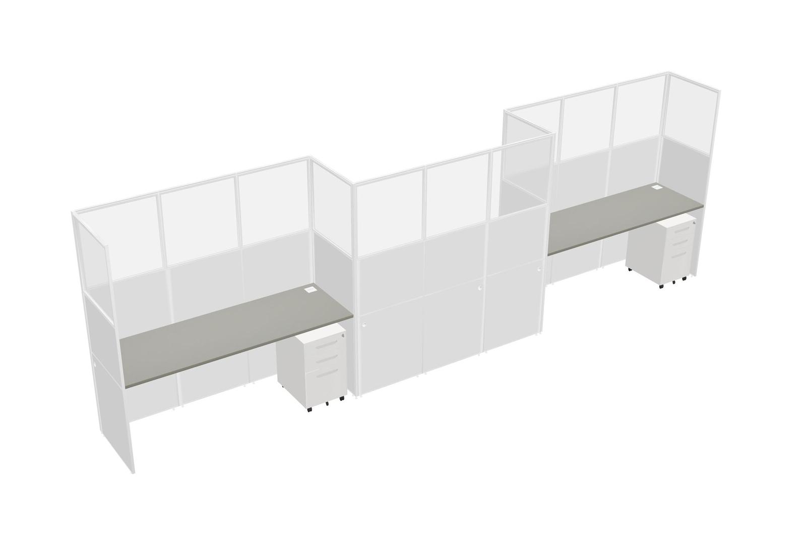 Grey Shadows Rectangular Cubicle Workstations For 3 - Zigzag Formation + White Metal Mobile Drawers