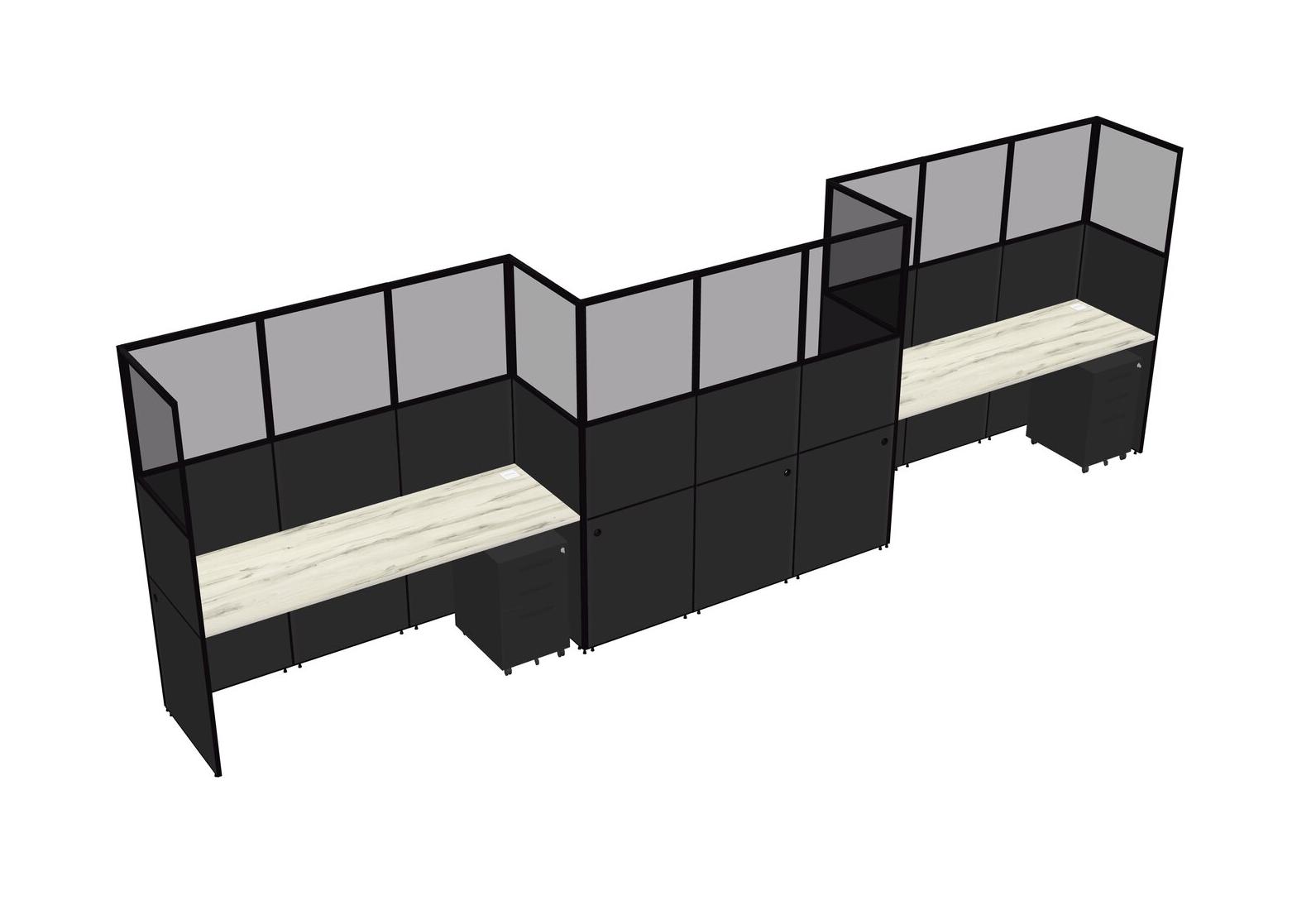 Heinne Holz Rectangular Cubicle Workstations For 3 - Zigzag Formation + Black Metal Mobile Drawers
