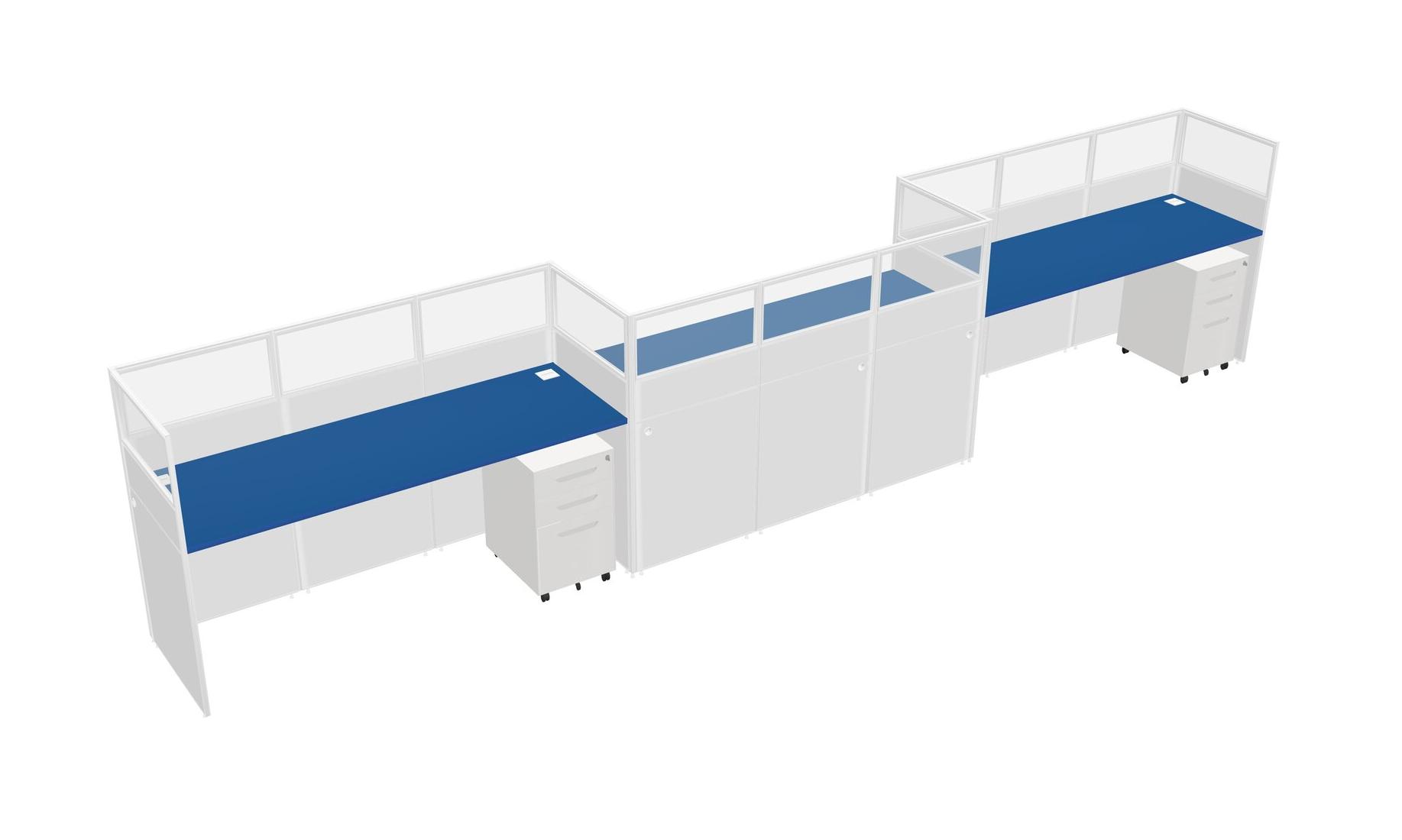Prism Blue Rectangular Cubicle Workstations For 3 - Zigzag Formation + White Metal Mobile Drawers
