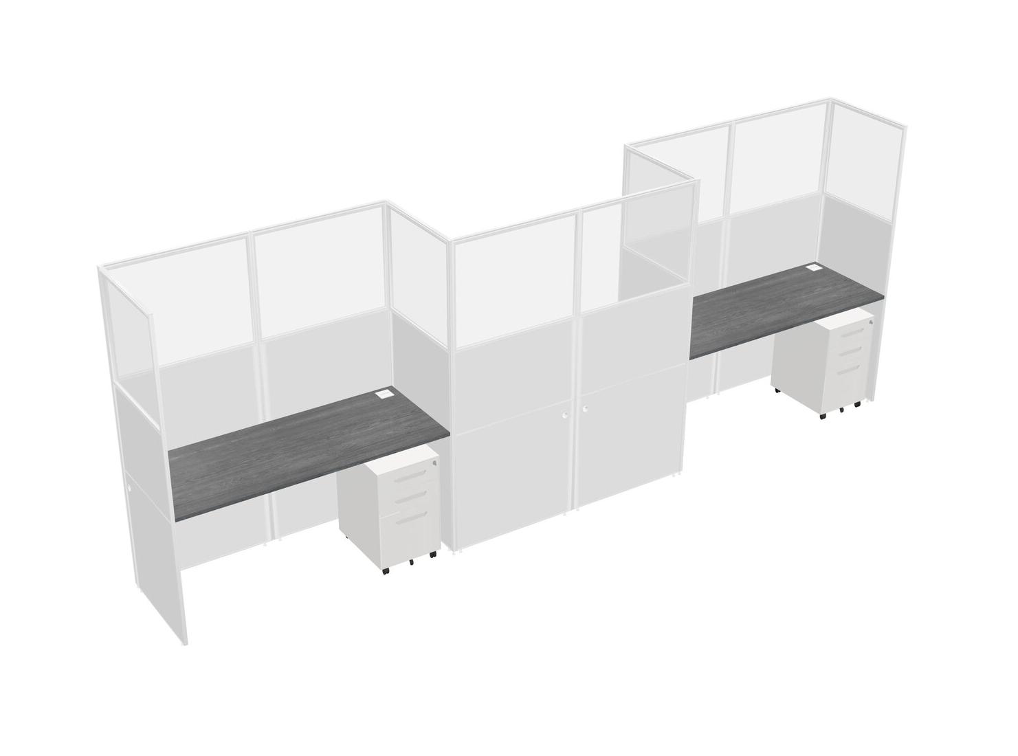 Grey Rectangular Cubicle Workstations For 3 - Zigzag Formation + White Metal Mobile Drawers