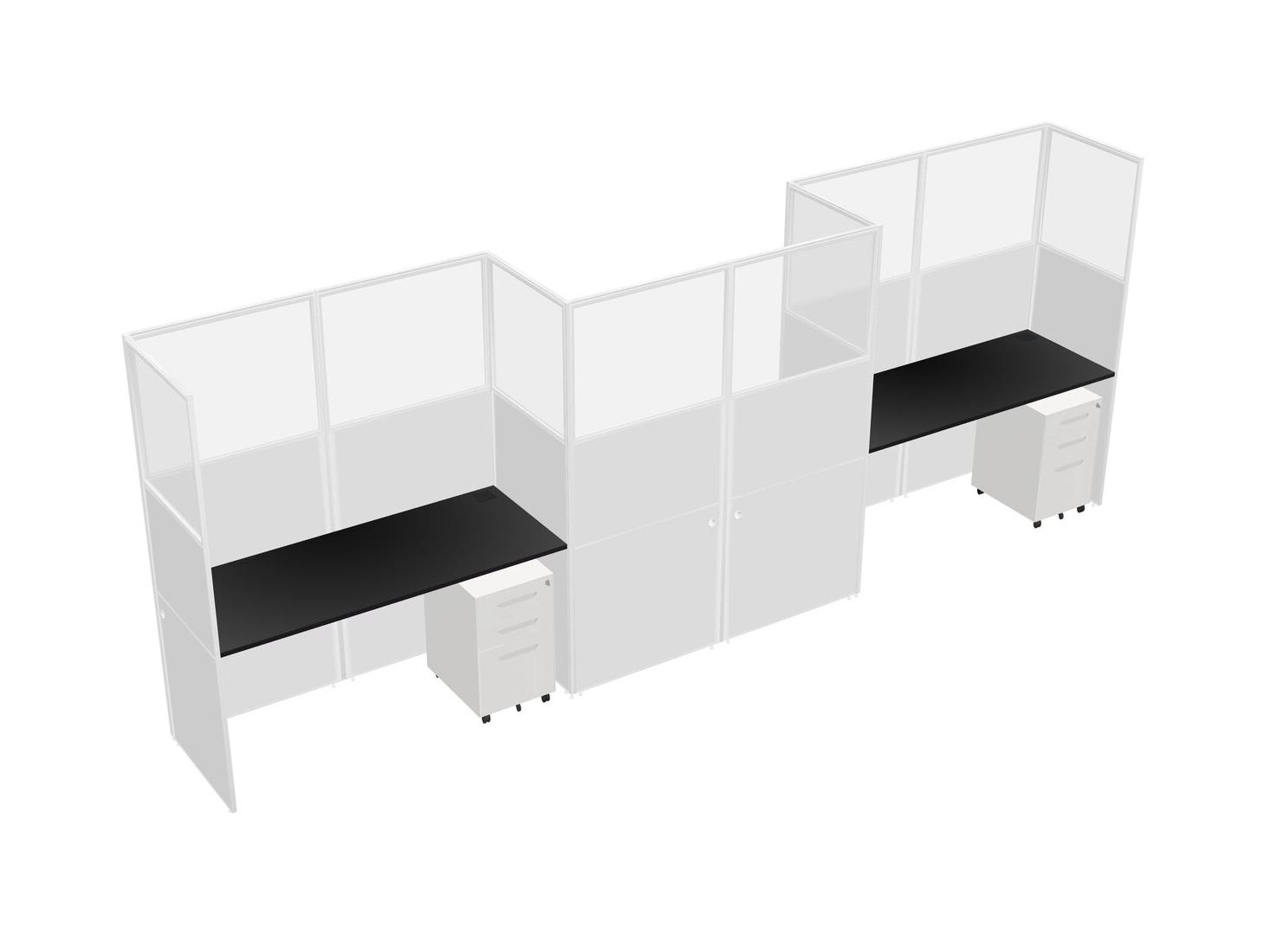 Black Rectangular Cubicle Workstations For 3 - Zigzag Formation + White Metal Mobile Drawers