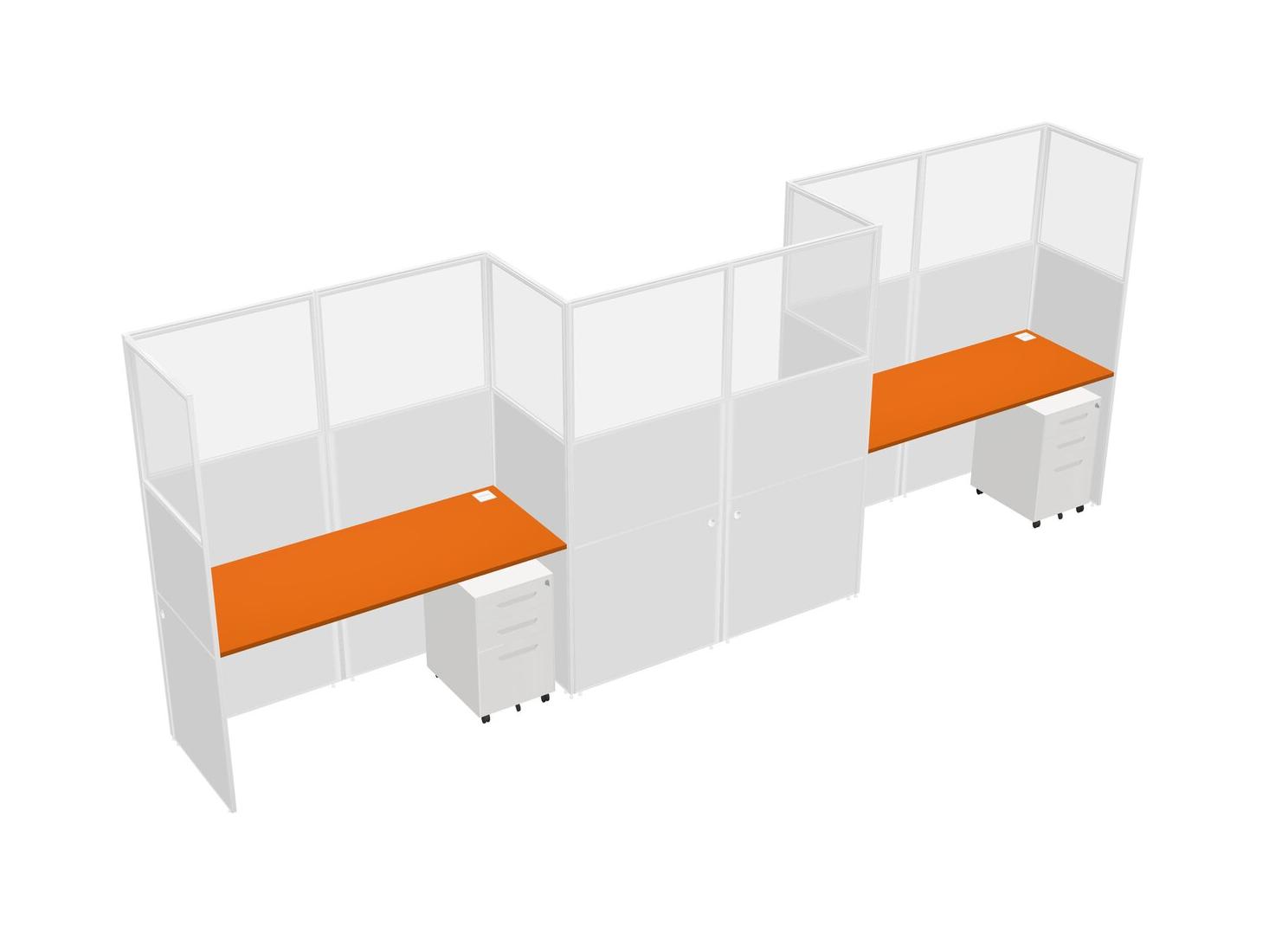 Orange Rectangular Cubicle Workstations For 3 - Zigzag Formation + White Metal Mobile Drawers