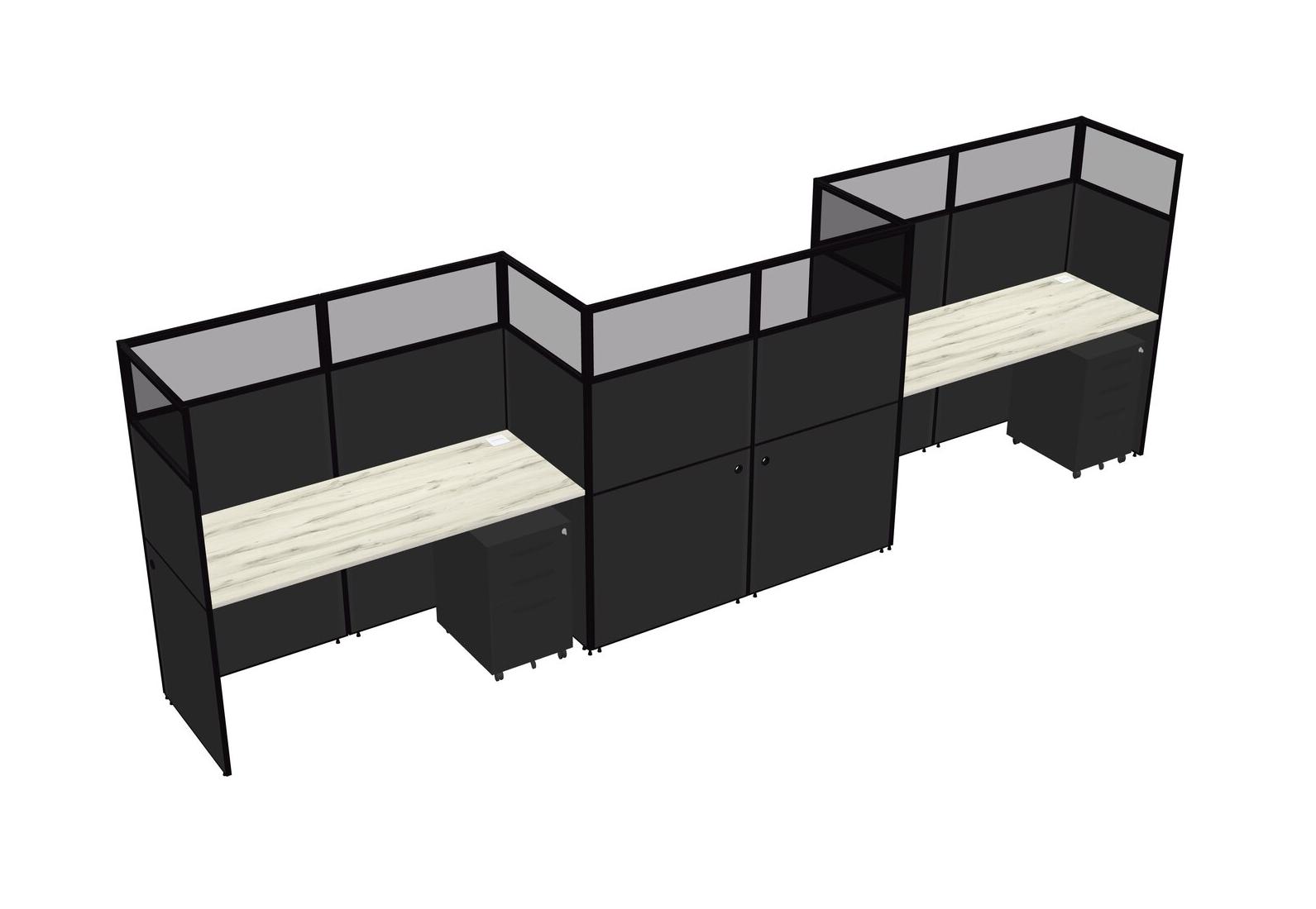 Heinne Holz Rectangular Cubicle Workstations For 3 - Zigzag Formation + Black Metal Mobile Drawers