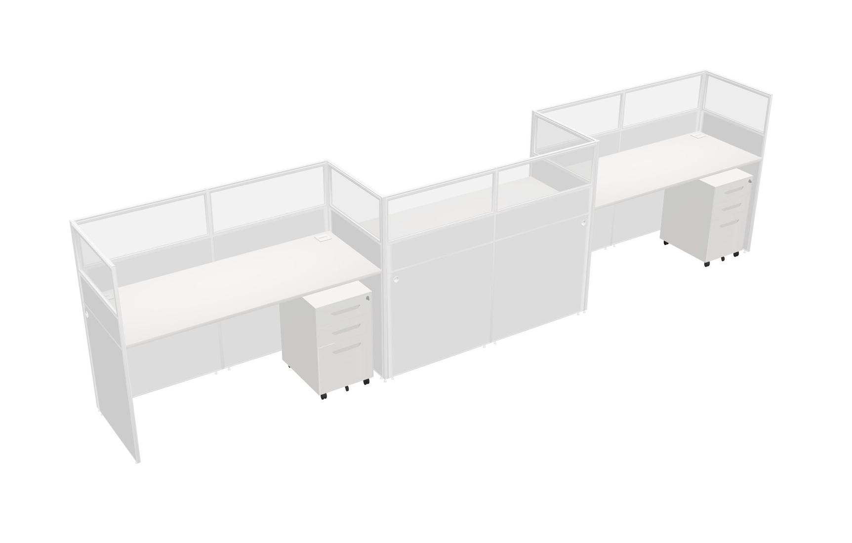 White Rectangular Cubicle Workstations For 3 - Zigzag Formation + White Metal Mobile Drawers