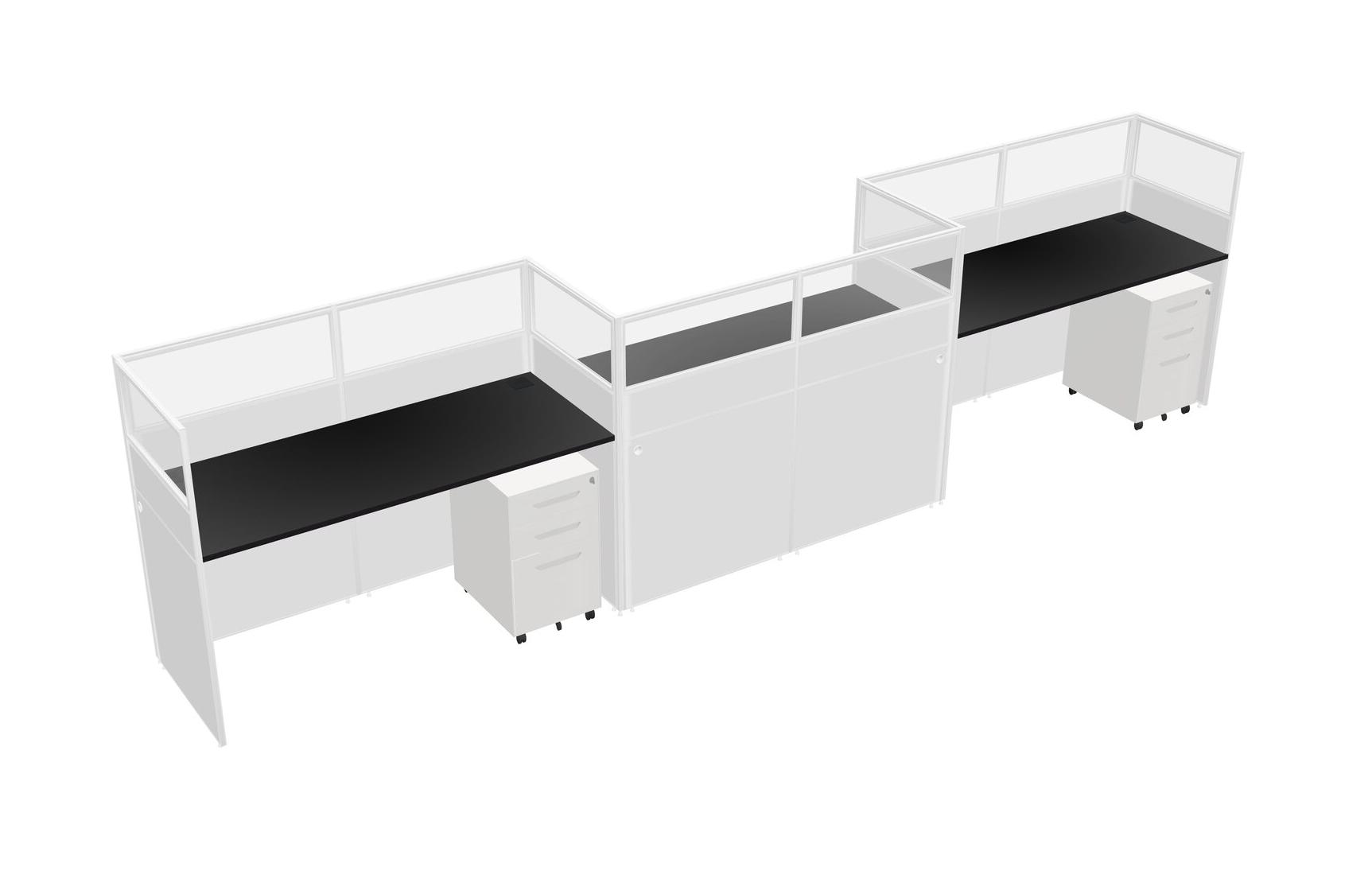 Black Rectangular Cubicle Workstations For 3 - Zigzag Formation + White Metal Mobile Drawers
