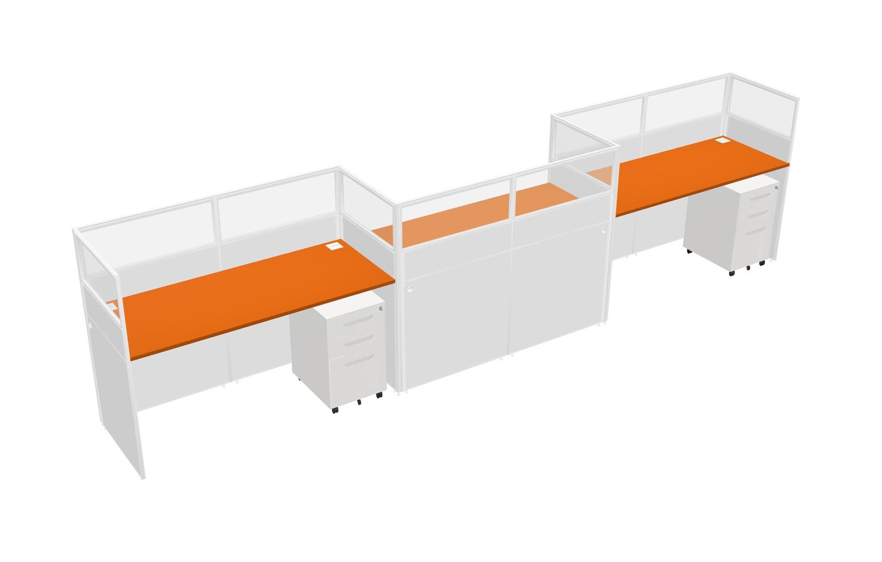 Orange Rectangular Cubicle Workstations For 3 - Zigzag Formation + White Metal Mobile Drawers